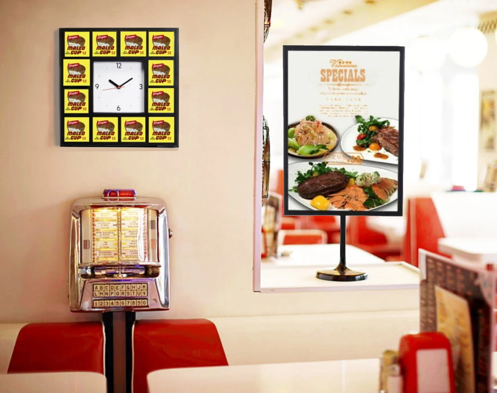 Shipping Mallo Cup Boyer Advertising Promo Diner Clock 10.5". Not $65 We run a company that makes special advertising wall clocks for car dealers, mechanic shops, garages , restaurants, diners, lunch counters, general stores, kitchens and more. Due to requests we have decided to offer a few of these special pieces to the public. NOT SOLD IN ANY STORE! THESE ARE NOT MASS PRODUCED! Generally we charge over $65 for these but have cut the cost here! This is a great clock. Total item is 10 1/2 inches by 10 1/2 inches. It sticks out from the wall about an inch and a half. It keeps great time. New technology makes it run up to a year on just one AA battery. The clock face is surrounded by 12 rich images. Each individual photo is acrylic encased for protection. This is for the true collector. Your clock will come fully assembled ready to hang on any wall. Shipping & Handling Back to Top US Shipping $9.76 USPS Priority Mail® International Shipping $23.54 USPS First-Class Mail International More than just a pretty picture. Try Vendio Image Hosting. Make your listings stand out with FREE Vendio custom templates! FREE scheduling, supersized images and templates. Get Vendio Sales Manager. Over 100,000,000 served. Get FREE counters from Vendio today!