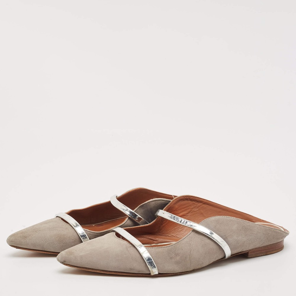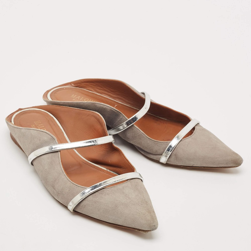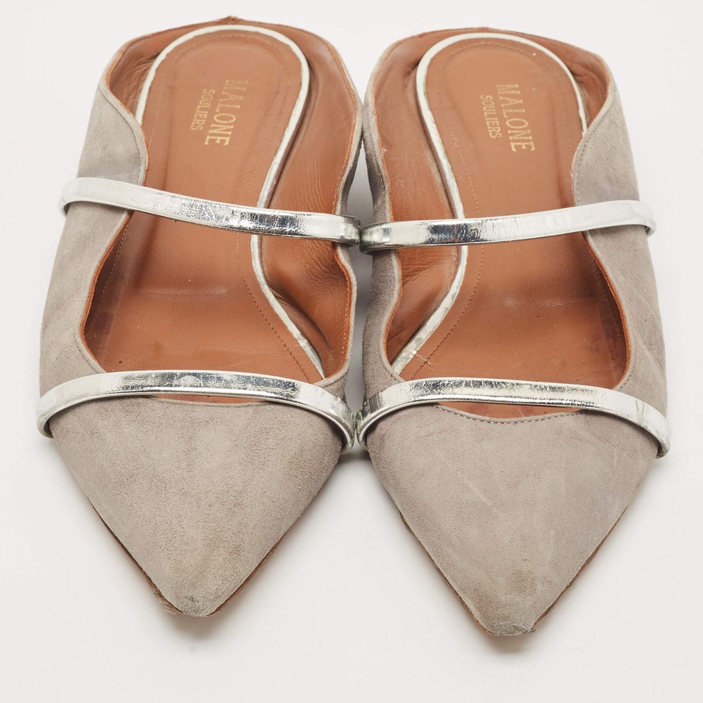 Our eBay Store About Us Contact Us Add to Favorite Sellers Malone Souliers Grey Suede and Leather Maureen Pointed Toe Flat Mules Size 40 A perfect blend of luxury, style, and comfort, these designer mules are made using quality materials and frame your feet in the most elegant way. They can be paired with a host of outfits from your wardrobe. Product Details Brand Malone Souliers Color Grey Material Leather, Suede Size 40 Certified by The Luxury Closet This item has gone through a detailed authentication process overseen by our experts. We offer a lifetime guarantee of authenticity on all our items. How We Check The in-house team of experts at The Luxury Closet is highly trained to verify the authenticity and the condition of the luxury products. They ensure that only 100% authentic items are put on sale.The evaluation process is unique with its own mix of assessment criteria and differs according to the category. Each item is evaluated based on the following combination of hallmarks, hardware, stitching, symmetry, material, craftsmanship, stamping, codes, hologram stickers, and packaging. Our authenticators also check if the items have been modified or amended (e.g., aftermarket diamonds, replaced batteries, repaired bags, etc.) International Buyers Import duties, taxes and charges are not included in the item price. These charges are the buyers responsibility. Please check with your country’s customs office to determine what these additional cost will be prior to buying.