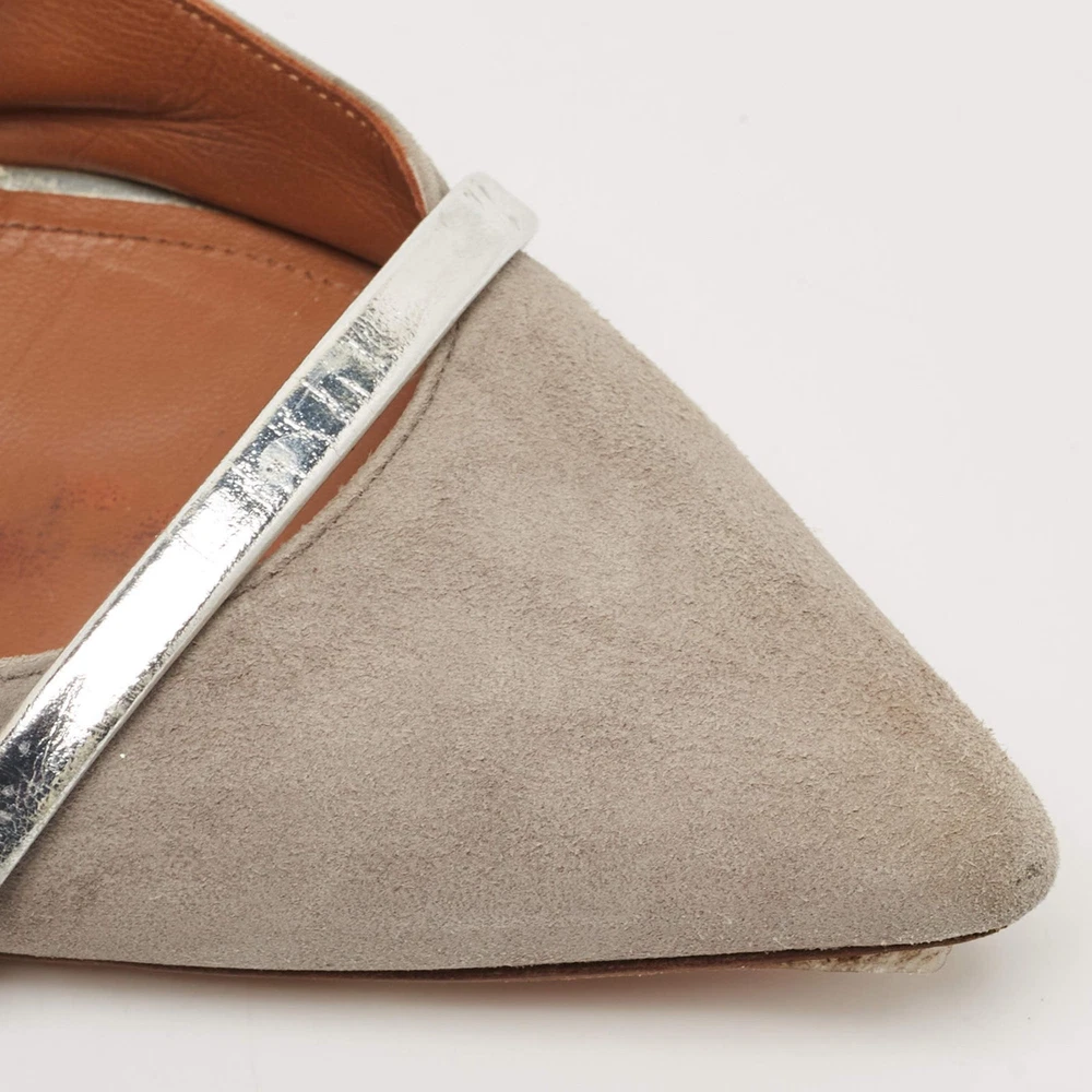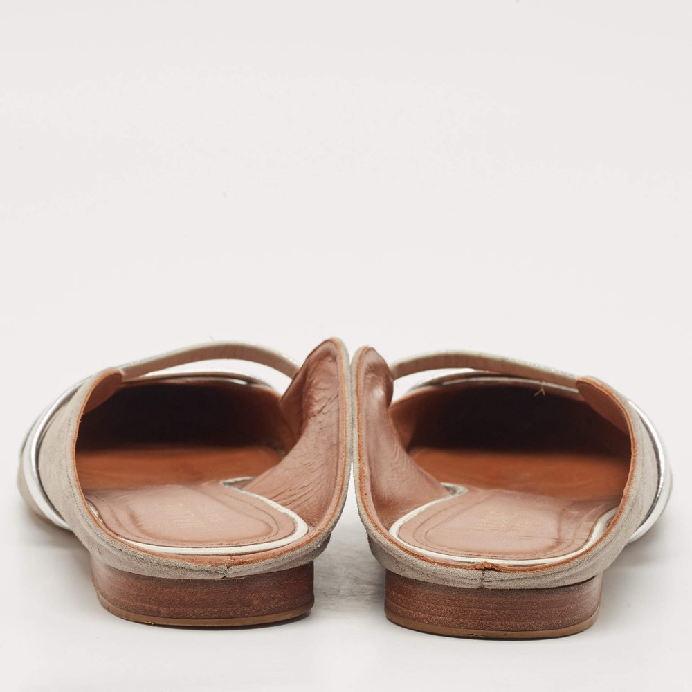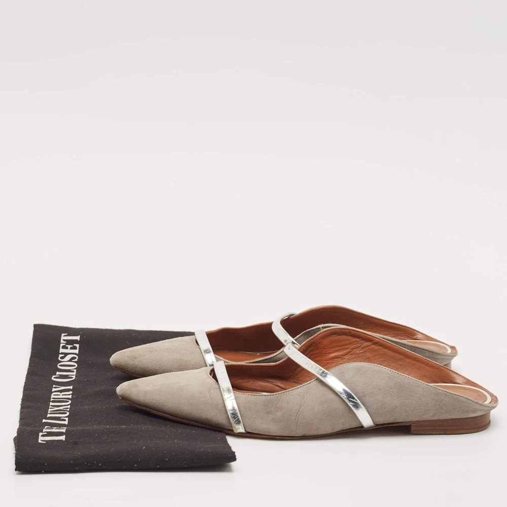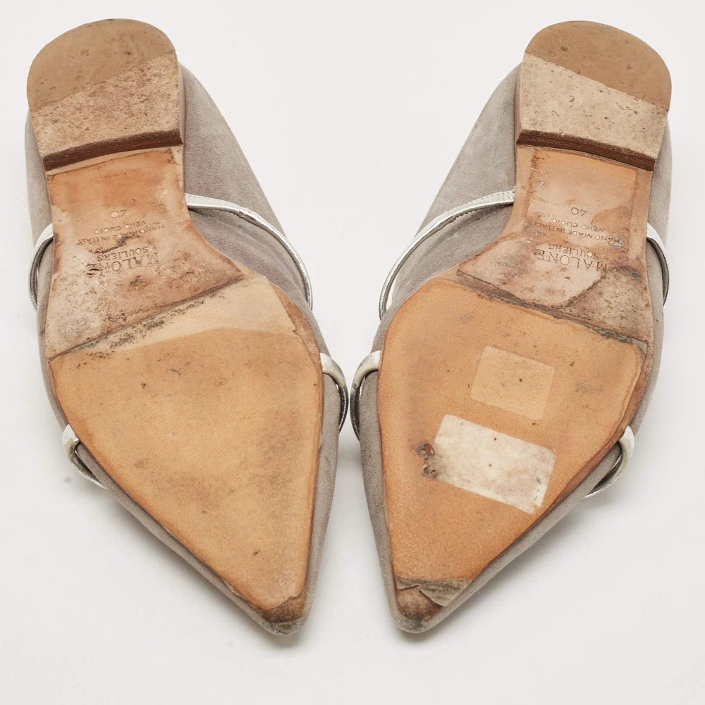 Our eBay Store About Us Contact Us Add to Favorite Sellers Malone Souliers Grey Suede and Leather Maureen Pointed Toe Flat Mules Size 40 A perfect blend of luxury, style, and comfort, these designer mules are made using quality materials and frame your feet in the most elegant way. They can be paired with a host of outfits from your wardrobe. Product Details Brand Malone Souliers Color Grey Material Leather, Suede Size 40 Certified by The Luxury Closet This item has gone through a detailed authentication process overseen by our experts. We offer a lifetime guarantee of authenticity on all our items. How We Check The in-house team of experts at The Luxury Closet is highly trained to verify the authenticity and the condition of the luxury products. They ensure that only 100% authentic items are put on sale.The evaluation process is unique with its own mix of assessment criteria and differs according to the category. Each item is evaluated based on the following combination of hallmarks, hardware, stitching, symmetry, material, craftsmanship, stamping, codes, hologram stickers, and packaging. Our authenticators also check if the items have been modified or amended (e.g., aftermarket diamonds, replaced batteries, repaired bags, etc.) International Buyers Import duties, taxes and charges are not included in the item price. These charges are the buyers responsibility. Please check with your country’s customs office to determine what these additional cost will be prior to buying.