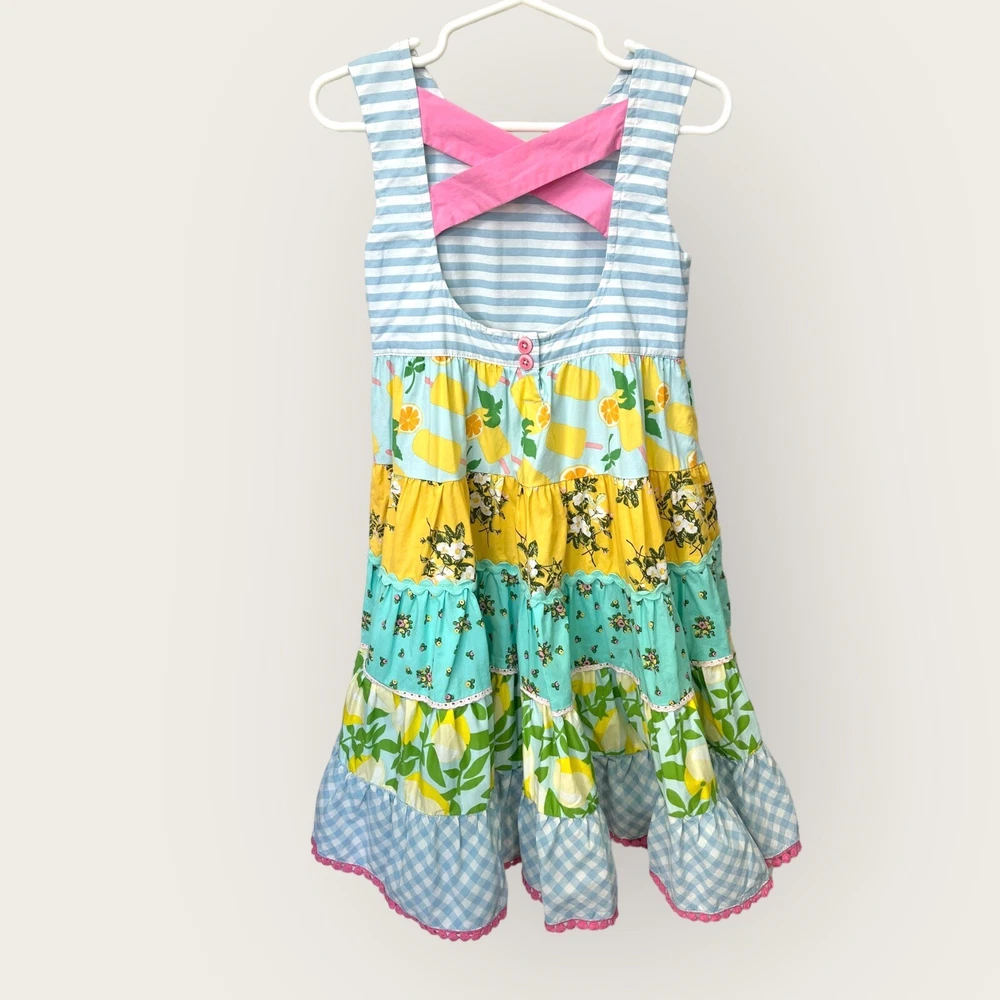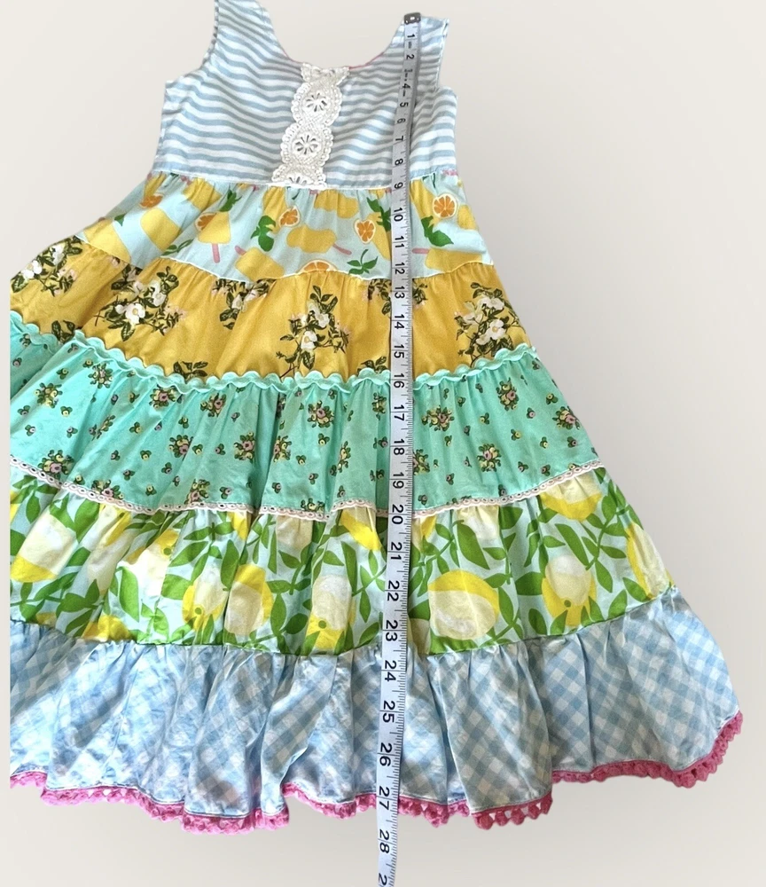 This beautiful Matilda Jane dress is perfect for any occasion! The tiered maxi style and gorgeous floral pattern make it a great choice for parties, weddings, or just a casual day out. The dress features a round neck and sleeveless design with a comfortable pullover closure. Whether it's for your little girl or as a gift, this dress is a must-have for any summer or spring wardrobe. The multicolor floral pattern is eye-catching and fun, and the long length adds a touch of elegance. Made by Matilda Jane, a trusted brand in baby and toddler clothing, this dress will not disappoint. Dress is pre-owned. No stains or markings. Great condition!