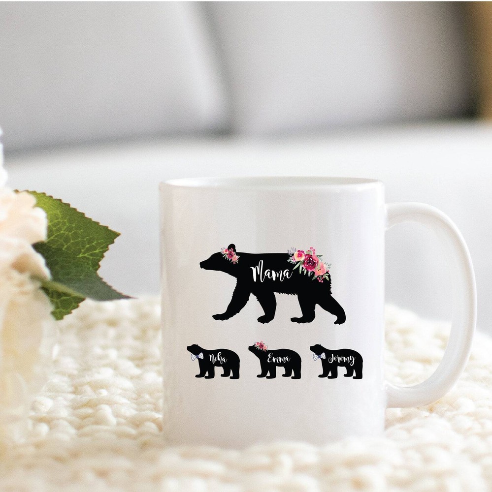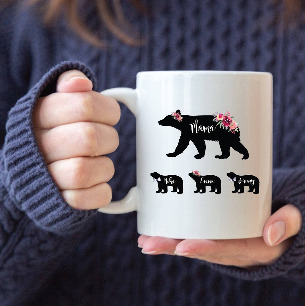 Mama Bear Coffee Mug Personalized Mom Mug Christmas Gift From Son Mom Gifts From Daughter Gift From Husband Mom Gift From Kids Product Details.. This high quality 11oz. ceramic white mug has a premium hard coat that provides crisp and vibrant color reproduction sure to last for years. Perfect for all hot & cold beverages. The highest quality printing possible is used. It will never fade no matter how many times you wash it. Material: 100% Ceramic. Print both sides. Dishwasher and Microwave Safe. High Gloss + Premium White Finish. Printed in the U.S.A. Personalized & Custom. We support personalized and custom mug to add custom, when placing an order, you can add notes to the "order note" in shipping address section. Also you can contact us directly via message. Shipping Info. Ready to ship in 1 to 2 business days, All products are made-to-order and proudly printed in the United States. Shipped by USPS and DHL, You will receive your order in 5-7 days. Replace & Refund. All products are defective during shipping broken, chipped will be replaced free of charge. You are not satisfied with the product, we will refund 100% money to you. If any other issues arise, please do not hesitate to message, we would be more than happy to assist you.