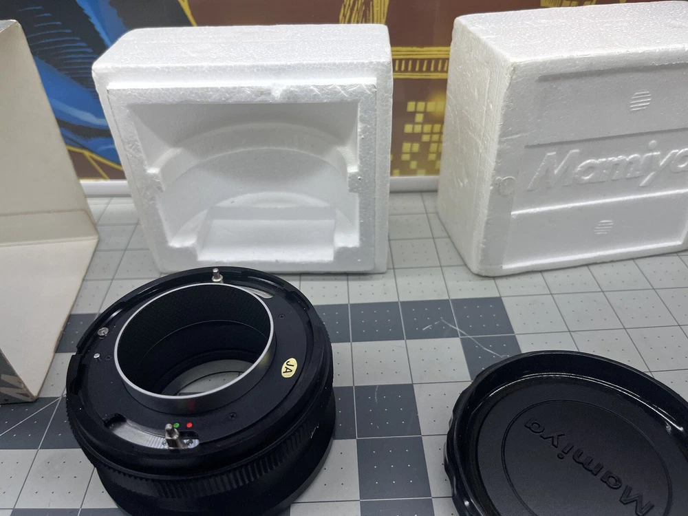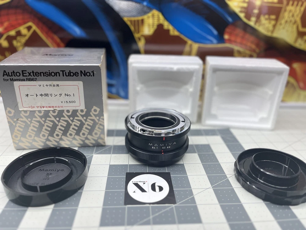 This is a Mamiya RZ67 Auto Extension Tube Ring No.1 that fits a 45mm lens front. The ring is in excellent shape and comes with its original caps. This extension tube is perfect for macro photography and allows you to get closer to your subject without the need for a dedicated macro lens. It is compatible with Mamiya RZ67 cameras and lenses. This item belongs to the Cameras & Photo, Lenses & Filters, and Lens Adapters, Mounts & Tubes categories. Get creative with your photography using this high-quality extension tube!