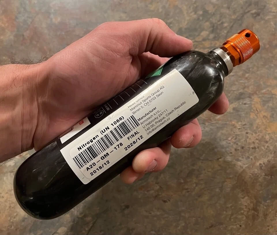 Selling Mammut Carbon Airbag cartridge.. Works with Mammut Airbag systems. These are single-use.. but super light (310g) and way smaller than the standard re-fillable canisters (see attached image from wildsnow) -must ship usps ground advantage due to TSA carrier restrictions
