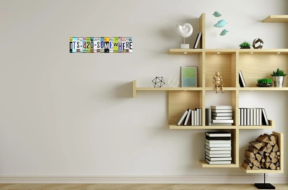 Recommended Uses For Product: recreational spaces, parties, and casual gatherings Material: Metal Pre-printed: It's 420 Somewhere Theme: 420 Color: 420 UPC: 705353775390 gtin13: 705353775390 Item model number: 420 Style: 420 Product Dimensions: 16"L x 4"W Brand: Does not apply Shape: Rectangular Mounting Type: Wall Mount Country of Origin: China Type: Does not apply Item Weight: 8 ounces