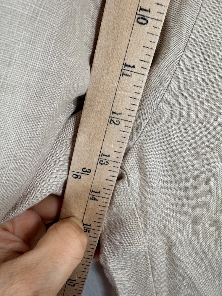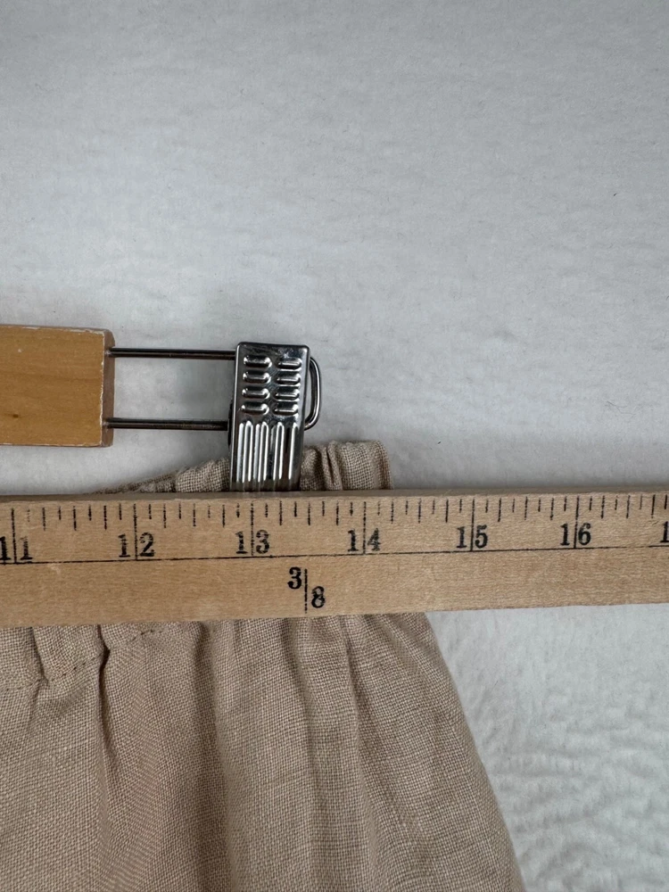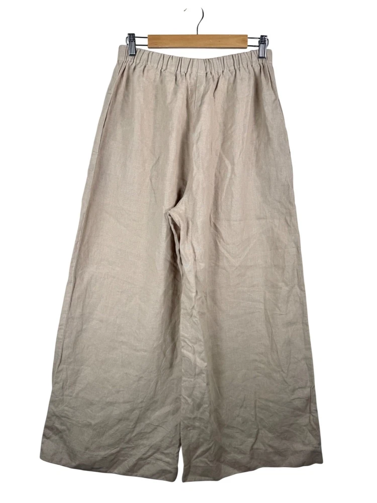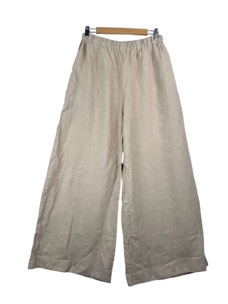 Excellent condition / inseam had been hemmed for petite length The essence of Man in the Studio is a clothing line that we create for the dolce far niente lifestyle – the sweet feeling of doing nothing. Living in the now, observing the landscapes or the buzz of life around you, enjoying time going by, immersing with creativity. All those are the moments that our clothes reveal at their best. We produce our clothes only by made-to-order principles, and have designed them to be timeless, staple pieces to withstand trends and encourage slower consumption habits. pockets on each sides SIZE M *BODY: Bust: fits bust around 36”-38”/ 92-96 cm Waist: fits waist around 28”-30”/ 72-76 cm Hips: fits hips around 37”-38”/ 94-98 cm 100% Midweight Linen Flat lay: waist 14" (elastic waist which stretches) Rise 13" Inseam 27.5" Leg Opening 14.5" Material: missing but obviously linen linen, boho, wide leg, coastal, minimalist, designer, 90s, flowy, relaxed, loose fit, preppy, money, high quality, sophisticated, timeless, effortless, versatile PLEASE check all flat lay measurements and listings carefully BEFORE PURCHASE!I put in a lot of work into hand measuring and researching each items as best as I can! Thank you so much for your consideration! Please note that: RETURN SHIP FEE IS PAID BY THE BUYER! If you are not too familiar with flat lay measurements, I recommend taking a measurement of your own clothes that you feel comfortable and compare with the measurement I provide. For returns: The items MUST BE IN SAME CONDITION AS SOLD for full refund! We all don't like returns and let's work together to minimize! Please note that RETURNS ARE NOT ACCEPTED FOR NEW WITH TAG OR NEW WITHOUT TAG ITEMS!