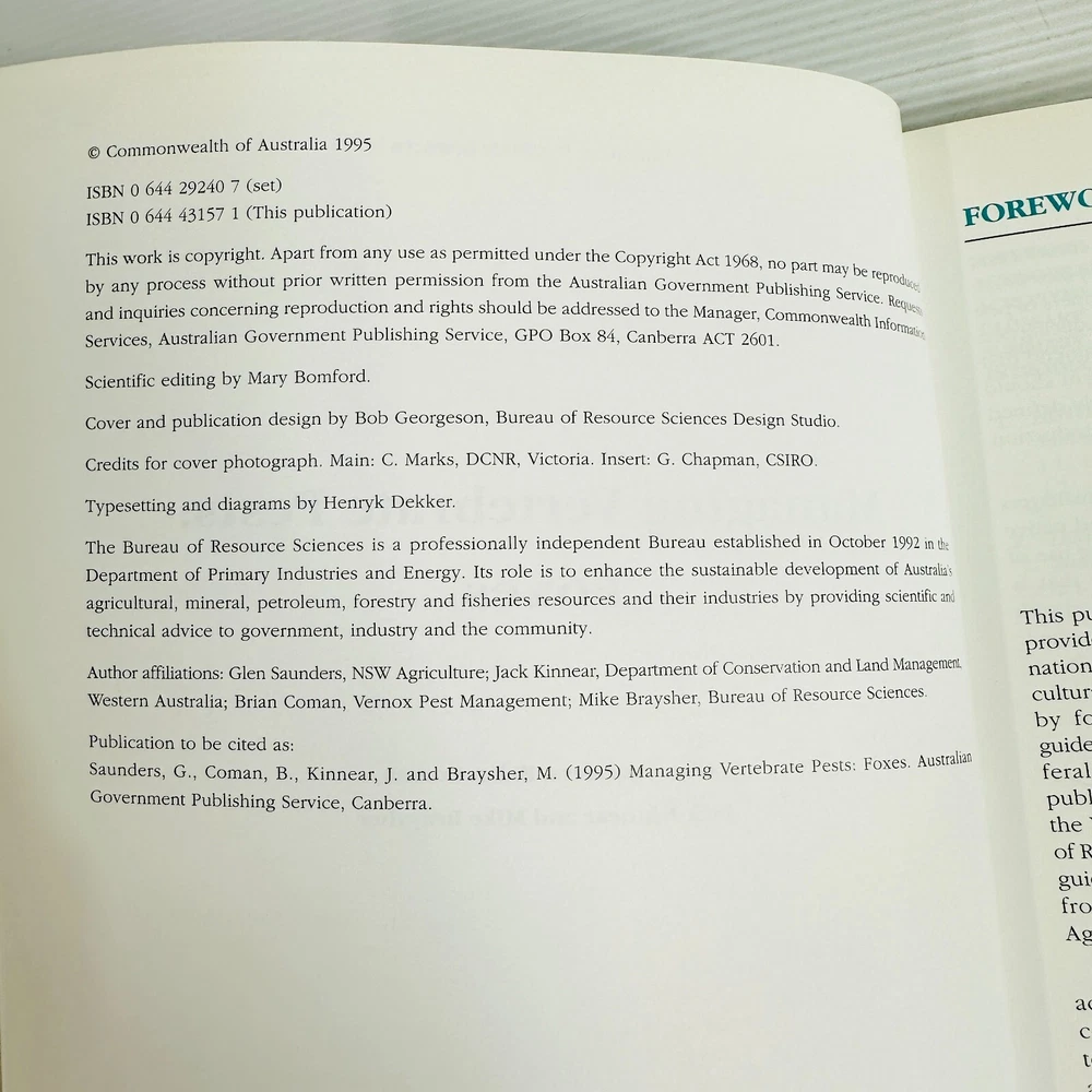 Managing Vertebrate Pests Foxes Glen Saunders Paperback Book Wild Animals Item posted within two business days of payment clearing via Australia Post. Australian seller - smoke free - pet free - working mum Adding new book listings daily to my store. My books are sent in strong Australia Post, Australian made, water resistant padded mailers that are recyclable through the REDcycle program and can be recycled at any major shopping centre. Pre-owned, see photos for condition and read the description.