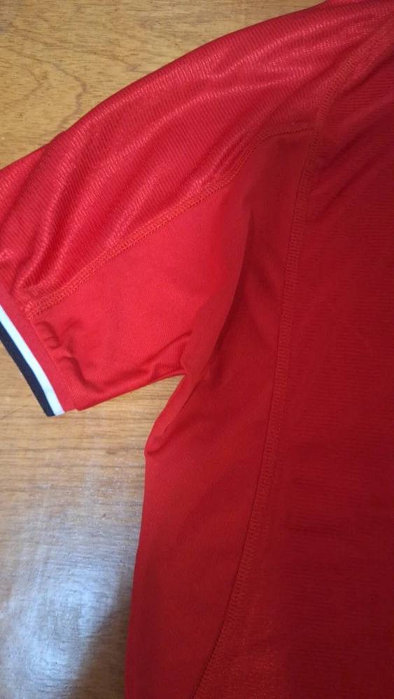 Embrace the legacy of one of the most celebrated football clubs with the Manchester United 2000 Home Retro Jersey. Manufactured by Umbro, this replica jersey is designed for fans who wish to honor the team's storied past. It comes in a vibrant red, synonymous with the team's iconic home kit, and is sized large to accommodate a comfortable fit.Crafted with attention to detail, this jersey features the renowned Manchester United crest, making it a must-have for collectors and supporters alike. Whether you're cheering from the stands or playing a match, this piece is a testament to your allegiance to the Red Devils and a nod to the prestigious Premier League heritage.