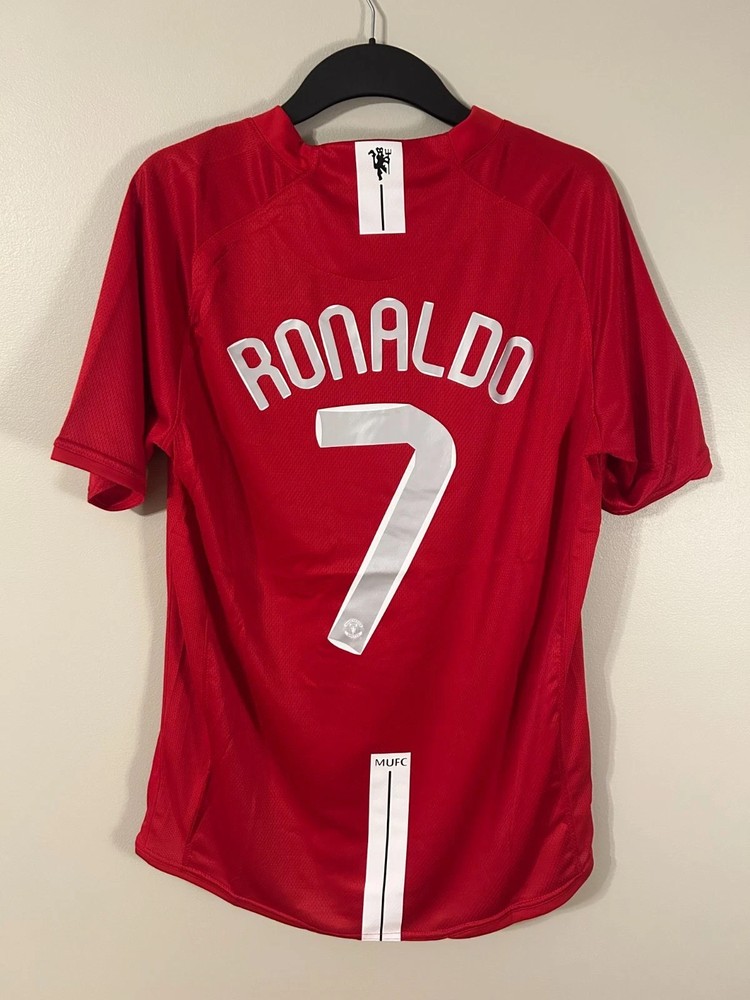 Size Large Own the iconic Manchester United 2007/08 Home Jersey by Nike, featuring Cristiano Ronaldo #7 with the official UEFA Champions League Ball Badge. Product Details: - Nike Manchester United Home Shirt (2007/08 season) - Cristiano Ronaldo #7 – Champions League edition - Includes official UCL Ball Badge - Classic red kit – a must-have for fans and collectors - Free shipping included This rare jersey is perfect for Manchester United supporters, Ronaldo fans, and football memorabilia collectors. Relive the legendary 2007/08 season when United lifted the Champions League trophy!