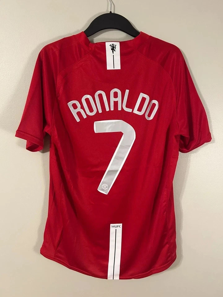 Size XL Own the iconic Manchester United 2007/08 Home Jersey by Nike, featuring Cristiano Ronaldo #7 with the official UEFA Champions League Ball Badge. Product Details: - Nike Manchester United Home Shirt (2007/08 season) - Cristiano Ronaldo #7 – Champions League edition - Includes official UCL Ball Badge - Classic red kit – a must-have for fans and collectors - Free shipping included This rare jersey is perfect for Manchester United supporters, Ronaldo fans, and football memorabilia collectors. Relive the legendary 2007/08 season when United lifted the Champions League trophy!