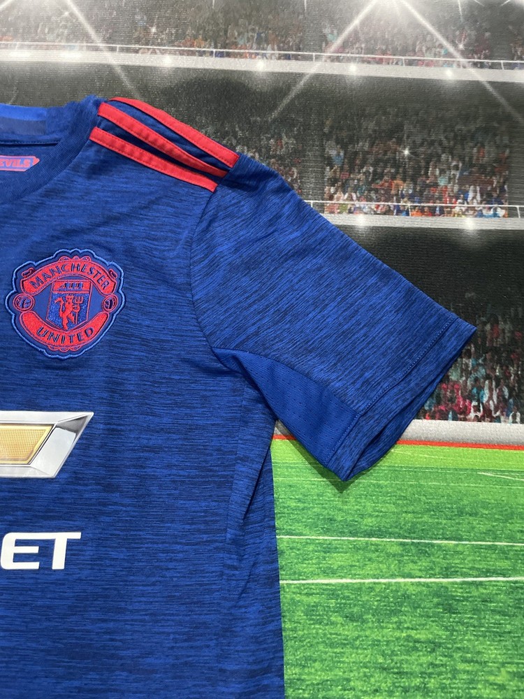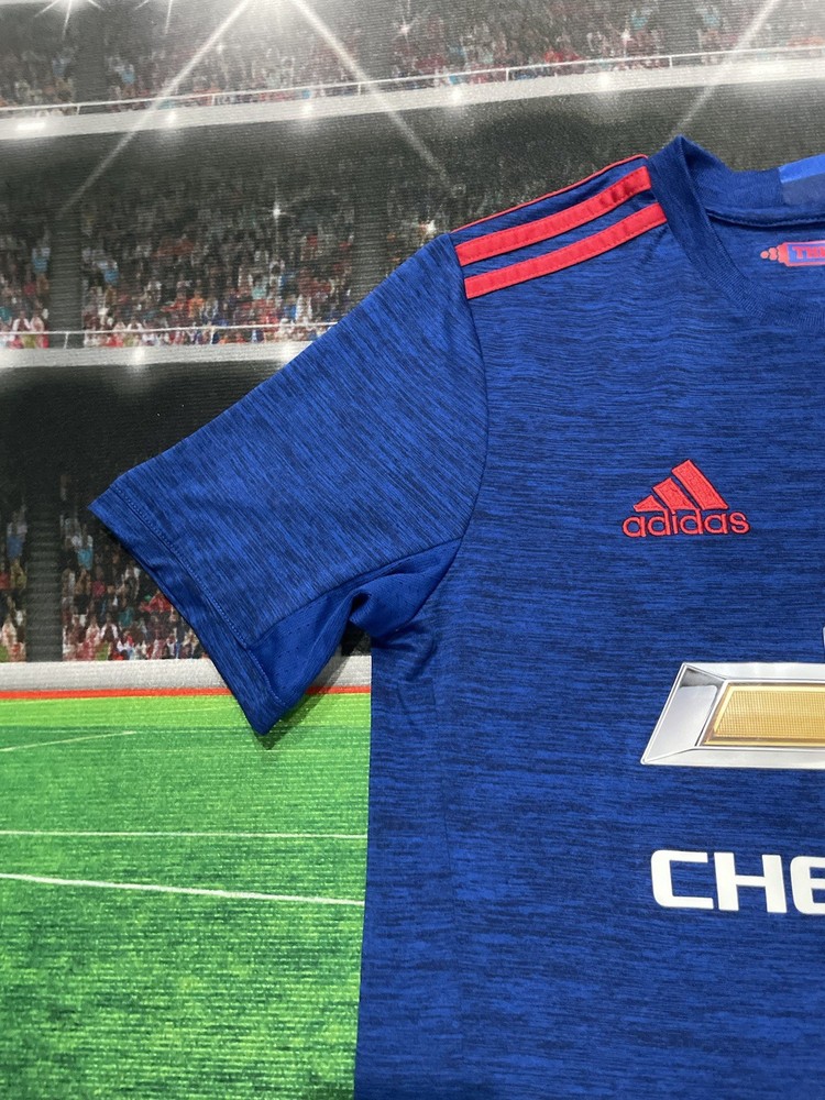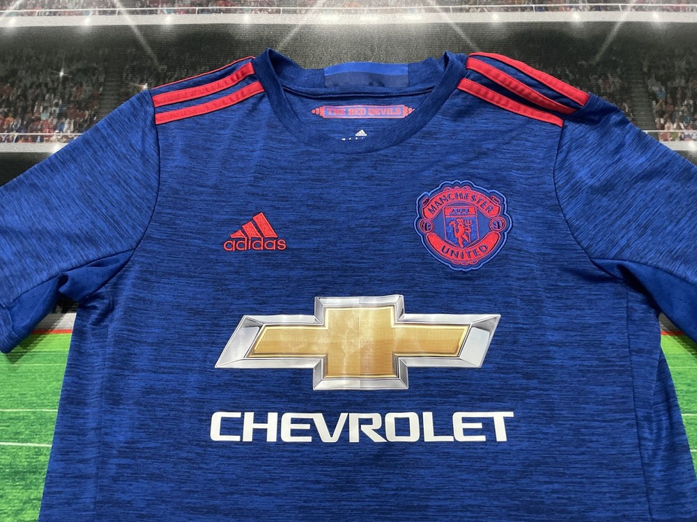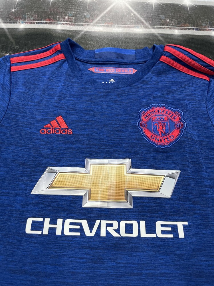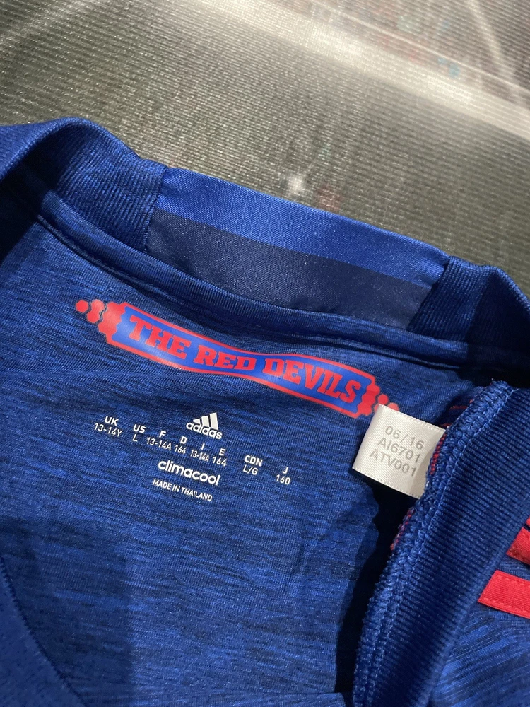 This product is a preowned youth size large Manchester United Wayne Rooney #10 Adidas jersey in blue. It is officially licensed by Adidas and features the iconic Wayne Rooney player name. The shirt represents the Manchester United team and is designed for unisex children. Made in Thailand, this jersey is a must-have for young fans of soccer and the legendary player, Wayne Rooney.