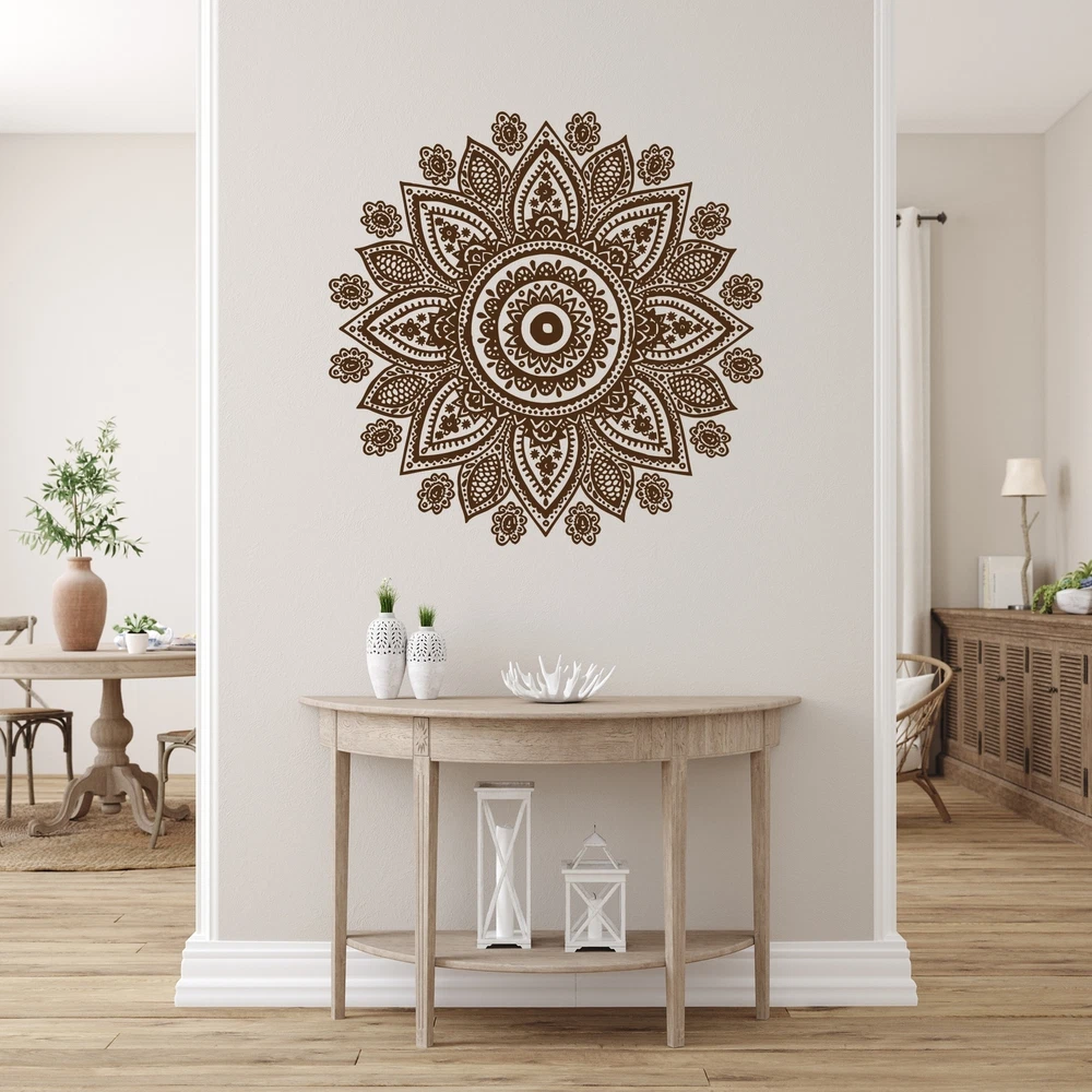 Mandala Wall Decal Yoga Studio Vinyl Sticker Decals Ornament Moroccan Pattern Namaste Lotus Flower Home Decor Boho Bohemian Bedroom Here you can find all kinds of wall decal creations suitable for you living room, bedroom, nursery room, office you name it, if it's a flat surface, it will stick to it. ABOUT OUR DECALS: Our High Quality wall decals art are proudly made in the USA. We use High Quality Vinyl material and high quality inks, safe for you and your children. Decals can be used for interior and exterior purposes. The sticker's color will stay vibrant and beautiful for many years of enjoyment. Decals are easy to remove but they are not reusable. APPLICATION OF DECALS: Must be applied on a flat, dry, clean, smooth surface. Can be applied on walls, furniture, glass, Free Shipping Over $49.99* Details Mandala Wall Decal Yoga Studio Vinyl Sticker. Product Description: Mandala Wall Decal Yoga Studio Vinyl Sticker Decals Ornament Moroccan Pattern Namaste Lotus Flower Home Decor Boho Bohemian Bedroom Here you can find all kinds of wall decal creations suitable for you living room, bedroom, nursery room, office you name it, if it's a flat surface, it will stick to it. ABOUT OUR DECALS Our High Quality wall decals art are proudly made in the USA. We use High Quality Vinyl material and high quality inks, safe for you and your children. Decals can be used for interior and exterior purposes. The sticker's color will stay vibrant and beautiful for many years of enjoyment. Decals are easy to remove but they are not reusable. APPLICATION OF DECALS: Must be applied on a flat, dry, clean, smooth surface. Can be applied on walls, furniture, glass, floor, wood or any other smooth and clean surface. Can not be applied on concrete or textured surface. If you want to apply sticker on floor, lamination is required Are not recommended for application over paints advertised as being stain-resistant or washable (like acrylic, latex etc). These paints are crafted to prevent things from sticking including vinyl decals. If your wall has been recently painted, wait at least 4 - 8 weeks before applying your decal. Step by step instructions are included with your purchase. For large sizes two people are recommended for installation of the wall decal. COLOR AND COLOR INFORMATION The color of the printed motifs may differ slightly from the color of the screen, depending on screen configuration. Colors look different on different monitors, please purchase a sample if you do really concern the colors and quality. Picture may not reflect true size. It can be bigger for showing purpose. It helps you to watch all details.