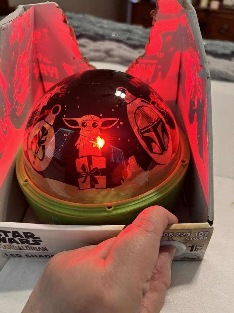 Franchise: Star Wars Manufacturer: GEMMY Number of Speeds: 1 gtin13: 191245189695 Color: Green Material: Plastic Character: STAR WARS Pattern: Stars Type: LED ROTATING SHADOWLIGHTS Occasion: Christmas Department: Teens, Unisex Adult Brand: Gemmy UPC: 191245189695 Power Source: Battery Theme: Christmas Vintage: No