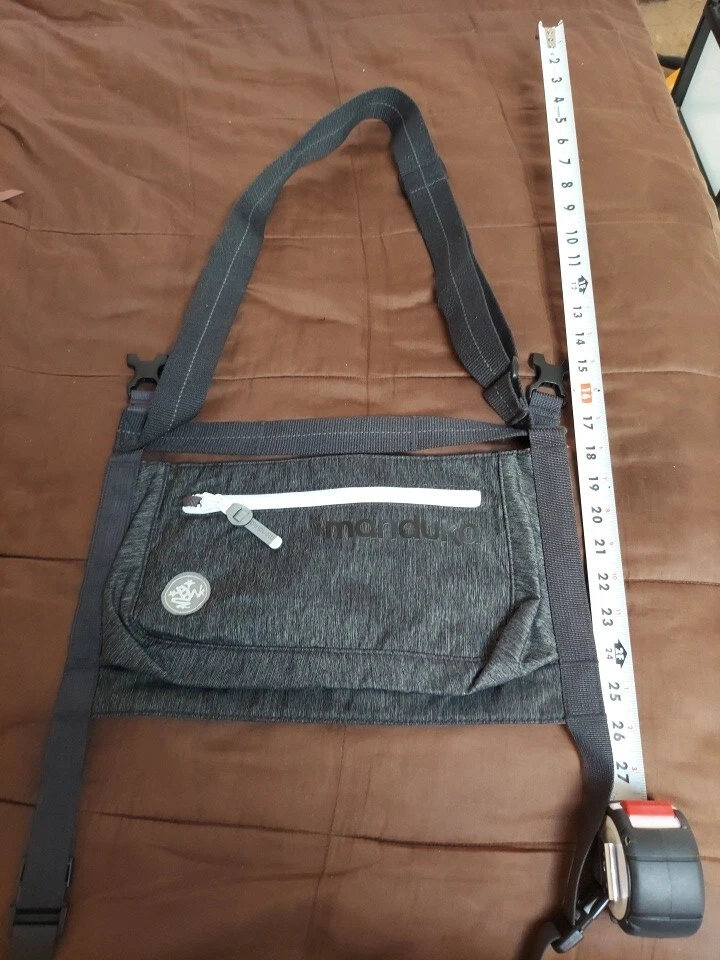 This Manduka Go Light Yoga Mat Bag is perfect for carrying your yoga mat around with ease. The bag is made of durable polyester material and features an adjustable strap for a comfortable fit. It has one pocket for storing your mat and is designed with a buckle closure to keep your mat secure. The black color of the bag fits most mats and the bag is medium-sized, measuring 14 inches in length and 8 inches in height. It is a unisex product and is not personalized or signed. The bag is made in Vietnam and is not vintage. Get your hands on this yoga mat bag and carry your mat around with ease!