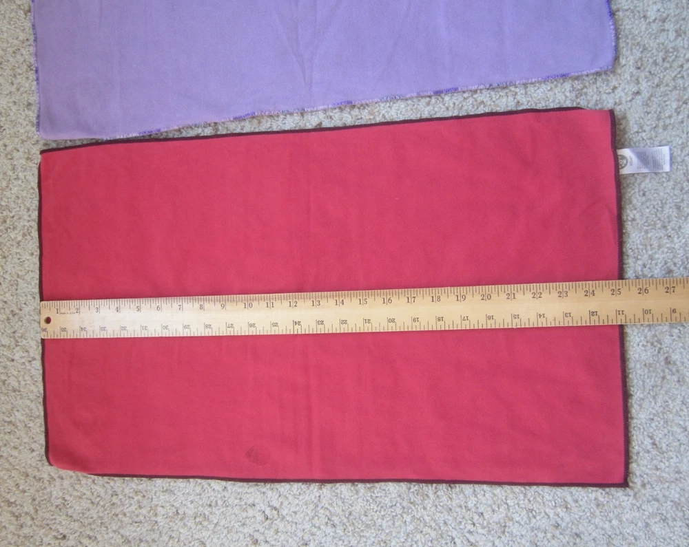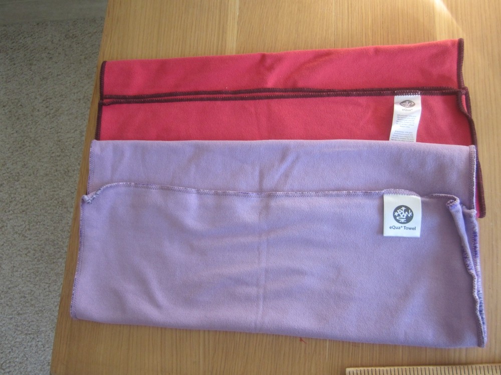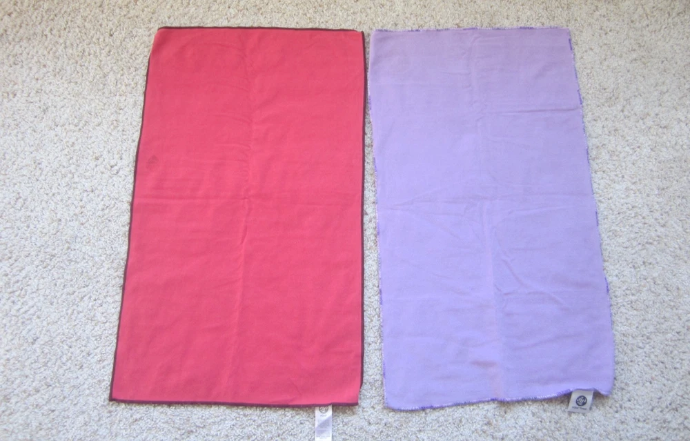 The Manduka eQua Yoga Hand Towel Lot of 2 is a modern, slip-resistant yoga towel made of microfiber and cotton materials. Designed for hot yoga and sweat-wicking, the rectangular towels come in a pretty pink and lavender color combination. Easy to care for with machine wash and tumble dry instructions, this quick-drying towel is perfect for all ages and suitable for both men and women. Included components are two eQua hand towels from the Manduka brand, ensuring a comfortable and dry yoga experience for sports enthusiasts.