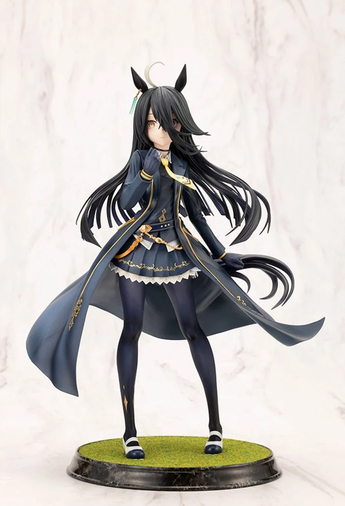 “I... am here. Together with someone you can’t see.” ● From Uma Musume Pretty Derby , “Manhattan Cafe” is now available as a scale figure! ● The dynamic flow of her racing outfit, as if fluttering in the wind, along with the meticulous sculpting and detailed paintwork, fully captures the charm of “Manhattan Cafe.” ● Additionally, the figure includes an interchangeable hand part holding a mug—perfect for displaying in your preferred style. ● The base, made with artificial turf material, is designed to evoke the heat and excitement of the racetrack. ● Be sure to welcome the radiant presence of “Manhattan Cafe” into your collection! ● Sculptor: Takanao ● Package size/weight: 32 x 25 x 20 cm / 930g ● Total height: approx. 248mm (including base) (C) Cygames, Inc.