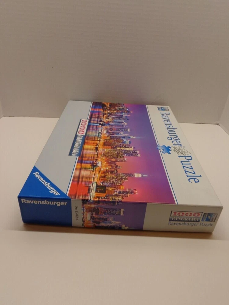 Manhattan Lights, Ravensburger Original 1000 Panorama Puzzle I have neither worked nor counted the pieces in this puzzle. I cannot guarantee that it is complete. If you want to combine shipping, add everything to your cart before paying. If you pay separately, you will need to notify me before I purchase shipping. I will accept returns on this item as shown in the listing. I do not cover the return shipping costs unless there is a defect in the product, an error in the listing, or damage in shipping. I cannot accept returns on new items if you open it, use it or remove the tags before returning.