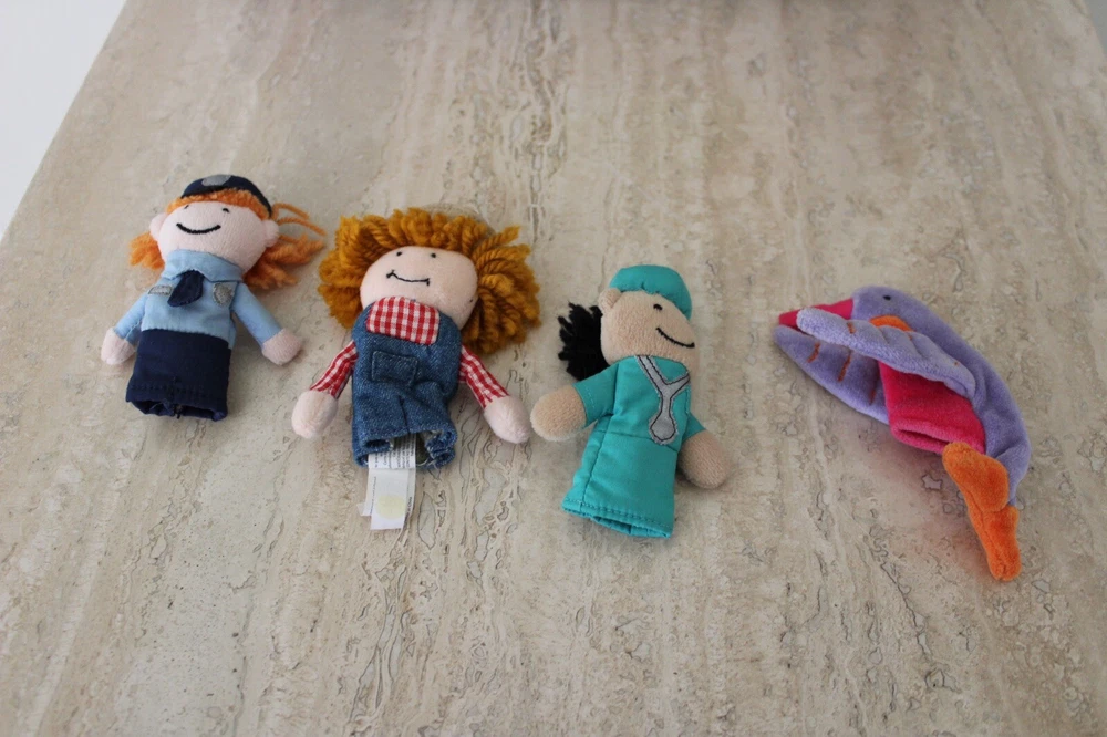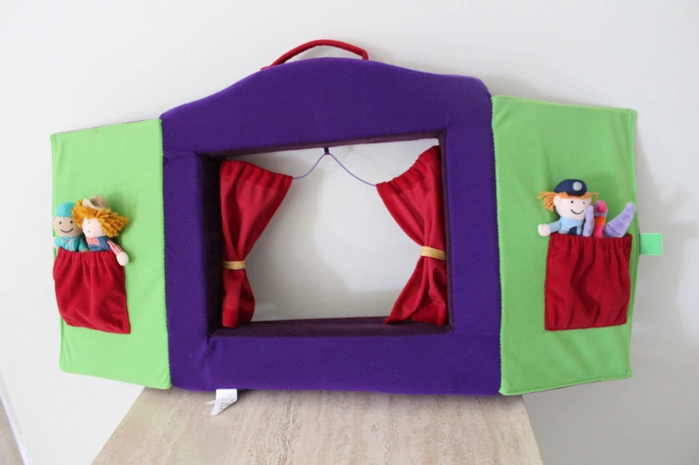 Manhattan Toy Company Purple Cloth Puppet Theater with Four Finger Puppets Measures 15” x 16” x 3” In a smoke-free home