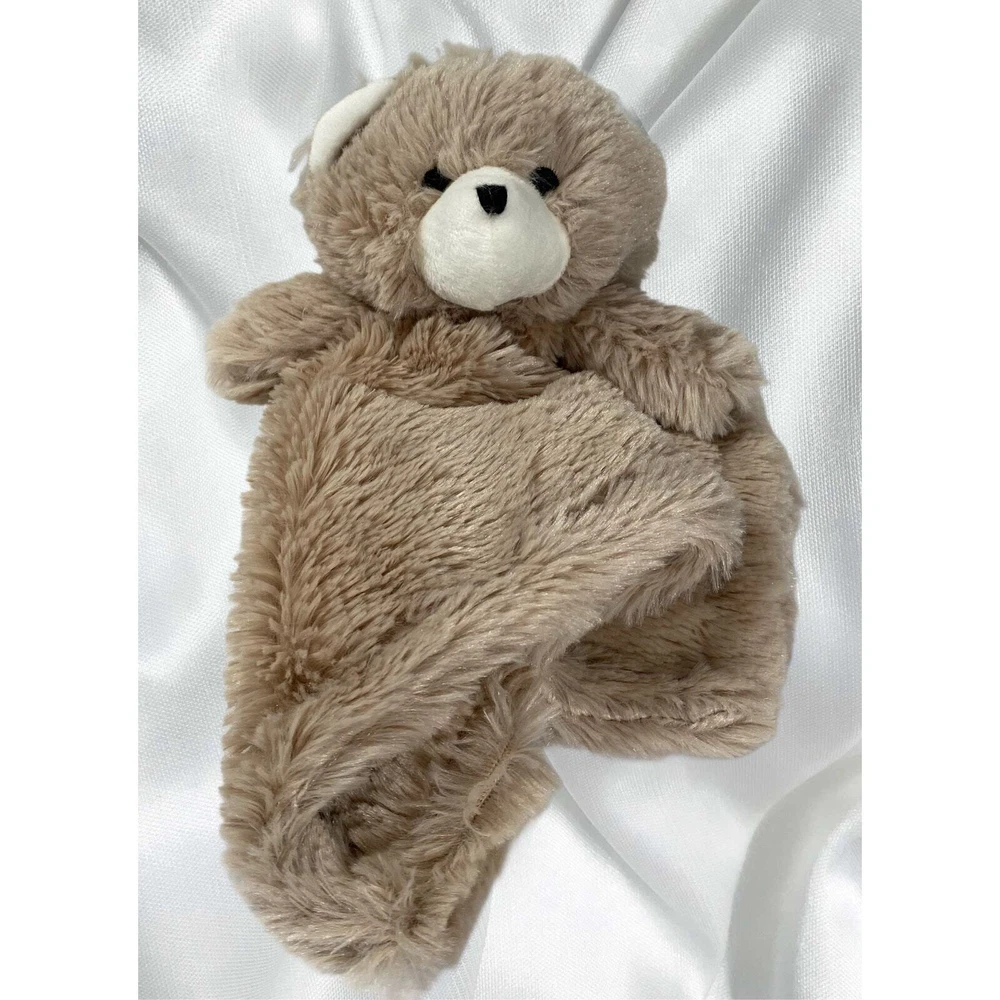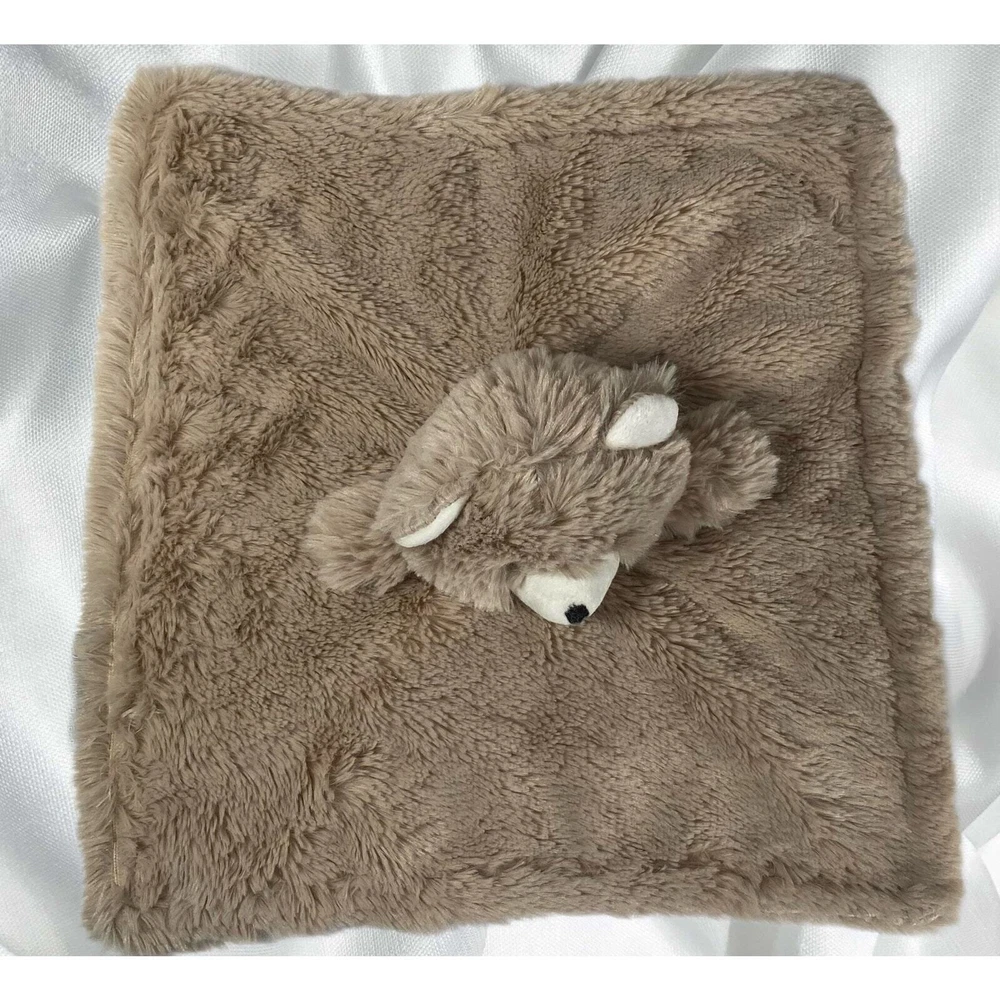 Soft fur teddy bear lovey cuddle blanket. Item has been machine washed & air dried. Eyes & mouth are embroidered. Measures approximately 14”x14”. By Manhattan Toys, however tag has been removed. Item is from a smoke free, pet free environment. 0779QQ
