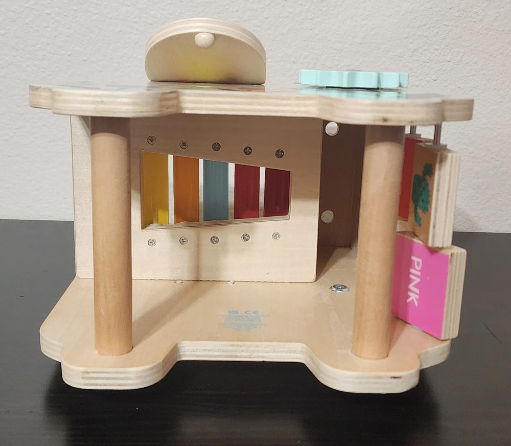 Manhattan Toy Wooden Musical Instrument Lili Llama Xylophone Rattle Learning Toy Preowned in Great Condition with Minimal Signs of Wear. Missing 1 of the 2 Hammers. Below Information from the Manufacturer: Get your jam on! This Llama is loaded with musical fun and activities: 4 spinners, 2 gears, 1 maraca tail, 5-bar xylophone, 1 set of notches/washboard for ratchet sound, 2 clacking saddle blankets and 2 mallets that store in Lili's head. The whole thing is cute enough to leave sitting out for all to see. Now a Toy of the Year Finalist! Named one of the Best Toys from Toy Fair 2020 by Good Housekeeping Institute. Among the Hottest Toys of 2020 that Kids Will Flip For. Measures 7.2D x 4.5H x 9W in. | 18.4D x 11.5H x 22.9W cm. All wood toys have non-toxic water-based finishes. This product meets or exceeds EN71 and CPSIA safety regulations.