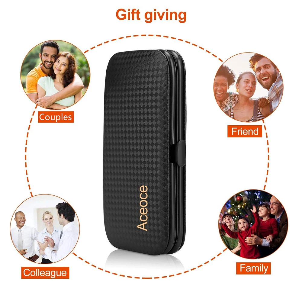Manicure Set Personal Care Nail Clipper Kit Manicure Professional Manicure Pedicure Set Mens Accessories Personal Care Set Nail Grooming Kit Present for Men Husband Boyfriend Parent Manicure Set: Professional Manicure kit contains 7pcs nail, toenail ,facial care tools in a case. Multifunctional include hand care,facial care,foot care all in one. Giftable for Christmas Thanksgiving : Mens personal care manicure kit ,exquisite appearance and portable size,nice present for men husbands father. Steady black PU leather case and and eye-catching red lining, stylish and functional good for men. Gfftable box package for Christmas stocking stuffers for men ,husband, boyfriend, brother ,families , friends, wowen and girls Portable Lightweight: Mens manicure set come with portable synthetic leather case and easily opened with a push of a button, size is 3.9*1.9*0.78inch, and weight is 0.3lbs .You can put the personal nail care essential tools into your fashion bags,car, and carry it when you on the go. Mens Grooming Set: lightweight in design making it your perfect travel partner.Easy to hold and easy to use so for traveling, You can put this accessories kit case in your bag and carry it wherever you go, ideal for travel abd everyday life necessaries Premium Quality: Aceoce personal care tools made of premium quality stainless steel and secondary sharpening,extreme hardness and sharp , easy to use.Upgraded and enlarged nail clippers, specifically designed for men , hard nails and toenails. Product Description Christmas Gift Ideal Manicuring, pedicuring, eyebrow repair, exfoliating Etc, only with one set and all done. Multifunctional nail manicure set meet all you need -It is an amazing chirstmas gift for your family or friends. Manicure & Pedicure Kits Aceoce Travel Manicure Set -Black and Red Classic red and black colors , enthusiastic and unrestrained, is the most popular color Manicure Set: Professional Manicure Kit Contains nail and toenail tools, Multifunctiona include hand care,facial care,foot care tools. Personal care Gifts for Men Women : Best personal Manicure Pedicure Kit Magnificent leather case, stylish and functional good for families and friends, gift box package for men Husband, boyfriend, brother and wowen girl Aceoce Travel Manicure Set -Blue Steady and calm dark blue manicure set, It is the best small gift for men and also a good business gift Premium Quality: Nail Scissors Made of professional surgical grade Stainless Steel, hard and easy to cut the nail & hair.Safe Sterilization, Prevent Corrosion and Minimize Risk of Infections. Aceoce Travel Manicure Set -Black and White The classic black and white combination will never go out of style Manicure Set: Mens women grooming kit base manicure kit contains nail and toenail tools, multifunctiona include hand care,facial care,foot care tools in 1 case .You would not loose your nail clipper anymore ! Aceoce Travel Manicure Set -Mint Green Fresh and bright Mint green special colors for energetic teens and who with a strong personality Travel Necessary Set: Light Weight & Portable- Mini size Comes with a portable synthetic leather case that is easily opened with a push of a button, perfect for travel Business trip summer camp Aceoce Travel Manicure Set -Purple Women's favorite purple colors manicure set Portable size : The case is small enough to fit in a purse, and it seems quite strong and secure,compact nail kit, for purses, a solid sized pocket, or just a drawer to store in Aceoce Travel Manicure Set -Gradient Purple Specially customized mermaid gradient purple, which is the favorite color of women Perfect Gift: Our stainless steel manicure kit with an elegant and exquisite PU leather case, Innovative design, it is fashionable, practical and popular with family and friends. It is the best gift for family, couples, friends, students, and it is also the perfect gift for Christmas, Thanksgiving, Valentine's Day, Birthdays, Festival and Anniversary. Aceoce Nail Clipper Set & Nail Grooming kit We select 7 tools with portable Pu leather case for men ,women, teens when they are in travel, office,school . Take care of personal care wherever.Made of stainless steel.All the tools were strictly inspected to get your satisfaction or even exceed your expectation.it is suitable as gift for yourself, your family, and friends! At the same time, this green nail clipper kit is beautiful and practical school gift for kids teens The video showcases the product in use. The video guides you through product setup. The video compares multiple products. The video shows the product being unpacked. How to open ? It is easy to be open , just push button type mechanism on the side of the pu leather case.In addition, it may be automatically bounced off by the backlog of external force, so it is normal if the buckle has been bounced when received. TSA approved ? Yes what is the material ?Is it easy to rust? Stainless Steel. After use wipe clean with alcohol, or wash with water then wipe dry.All knives are coated with anti-rust coating, but still need to be kept dry to avoid rust I want to use as a gift , is it good? Of course yes ! It is great as a small gift ! How about the quality ? Great value for money, nail clippers are sharp Facial Care Tools Ear pick Eyebrow Tweezer Nose Hair / Eyebrow scissors Foot & Hand Care Tools Nail file Nail cleaner Large nail clipper Diagonal nail clipper Men Manicure Set Men Manicure Set Women Manicure Set Women Manicure Set 2.76 "w x 4.33 "w. Item model number nail set 01 Color Black and Red Product Dimensions 4.33"L x 2.76"W Material Metal Is Discontinued By Manufacturer No Blade Material Stainless Steel