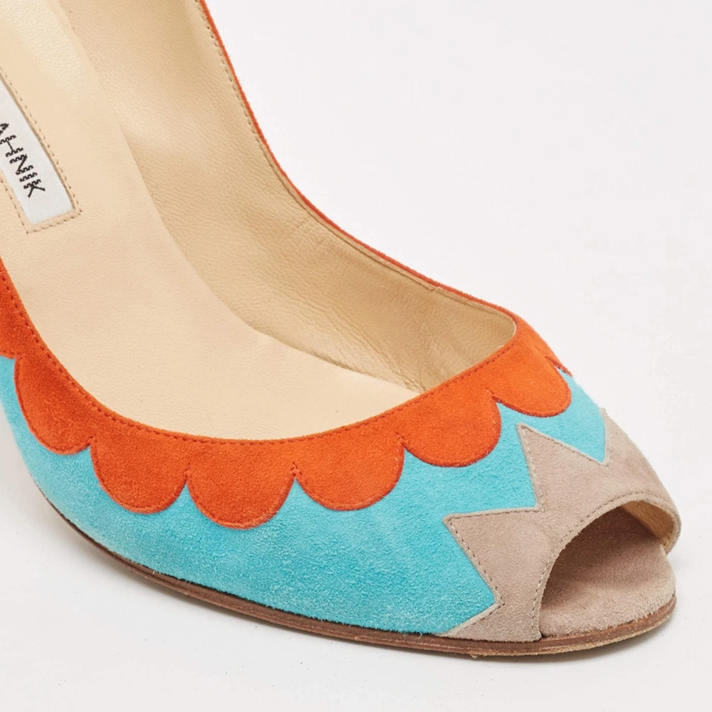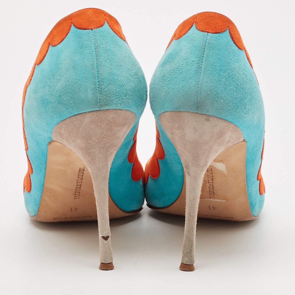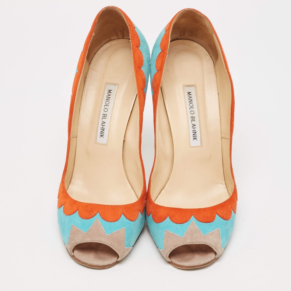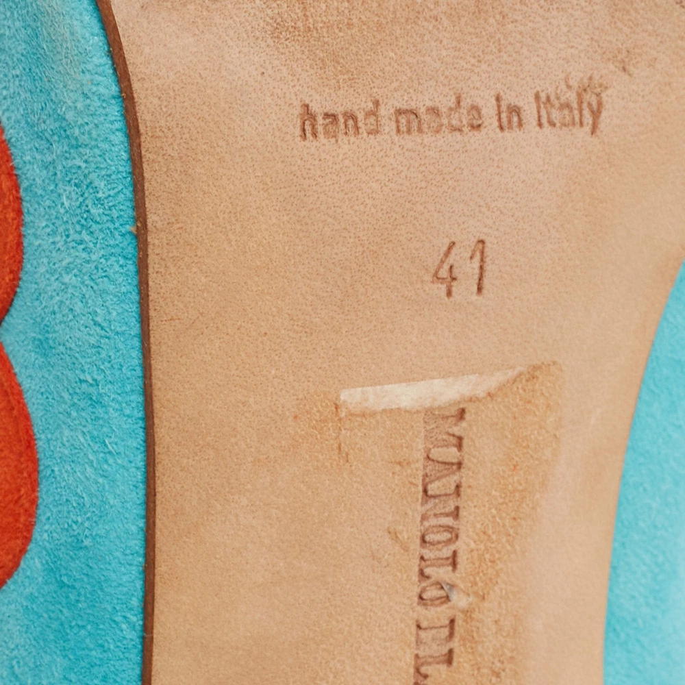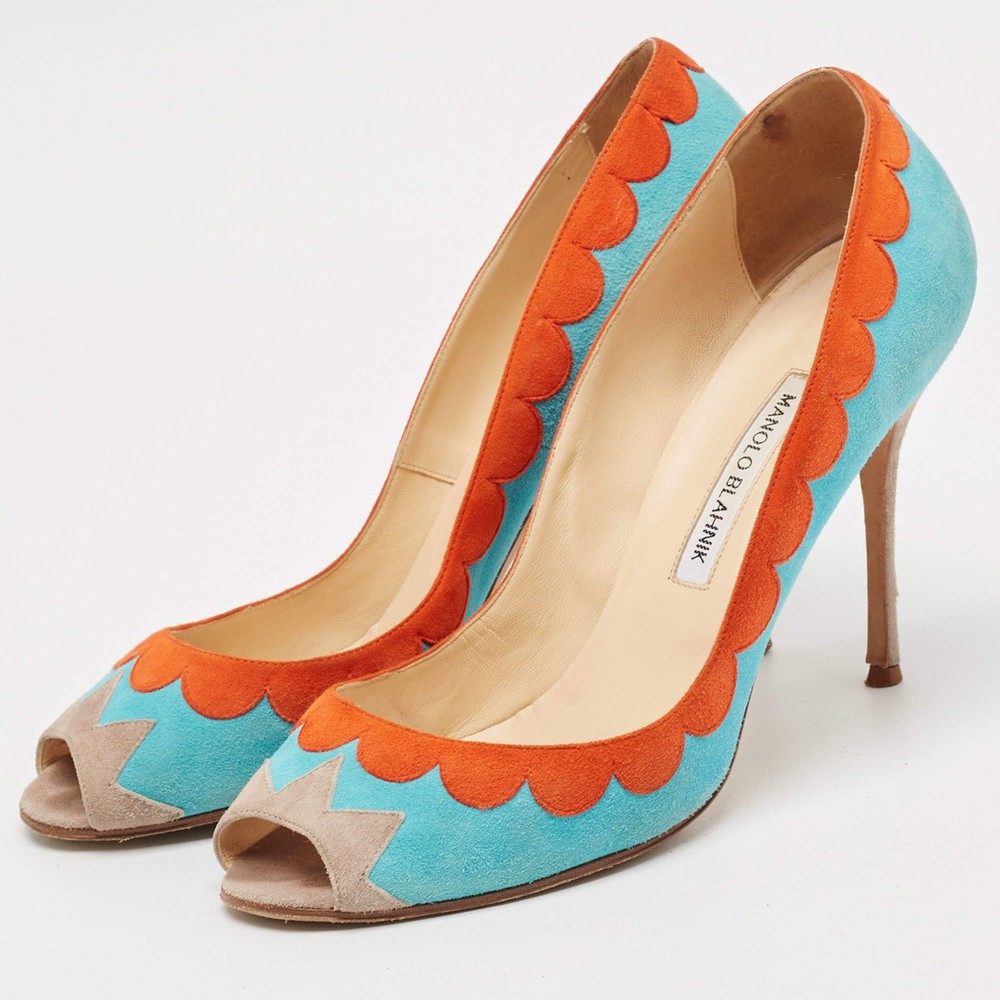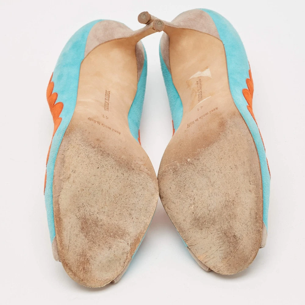 Manolo Blahnik BlueOrange Suede Peep Toe Pumps Size 41