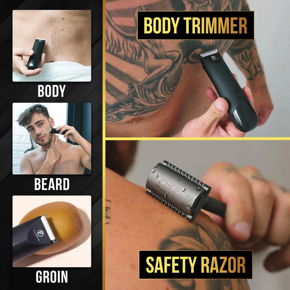 【INTRODUCING AN INDUSTRY FIRST】 - There are many body shavers for men on the market, but brings the complete package to the balls trimmer market with our exclusive premium trimmer and safety razor combo. Our body trimmer for men gives you the freedom, power and versatility to mow through any hair type, while our safety razor allows for the closest, most confident shave you could ask for where it counts most 【ENGINEERING AT ITS FINEST】 - We had to uncomfortably test many mens ball trimmer devices to finally engineer the perfect groin hair trimmer for men. Our next level trimmer is cordless, waterproof and includes a charging station to ensure you're fully powered to mow through the toughest of bushes. It also comes with 3 trimmer guards to give the ability to level change beard and hair lengths 【TRUE ESSENCE OF MANSCAPING】 - Many mens body hair trimmer companies claim "nick free skin tight" shave, but that's just not really the case. Well we don't need to play the balancing game anymore between close shave and safety, we introduce to you an exclusively designed safety razor that gives you a true skin tight shave with 100% safety. Our all metal safety razor was specifically engineered to allow you to shave any body part while preventing the dreaded nick 【THE WHERE AND THE HOW】 - 's ball and body hair trimmer is the most versitile kit on the market. Whether you're lining up your beard or mowing the lawn, our nick free, skin safe trimmer kit will give you comfortable experience in feeling your best. Our industry leading ceramic blades are precision sharp with the hygenic versatility to be replaced with our unique snap on/off feature 【MAINTENANCE FOR TOOLS】 - 'S ball and body trimmer was designed to last. Protect your investment by ensuring you replace your trimmer heads every 3 months and safety razor blades every 2-3 weeks