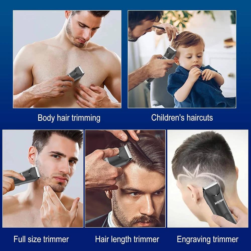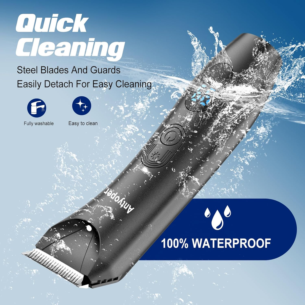 Special Care: Our Antyoper electric groin & body mens grooming kit allowing you to shave or trim any length of hair in all body zones, including the most sensitive ones. The LED light design provides precision in any direction, wet or dry, making it easily portable. Its hypoallergenic ceramic blades avoid irritation and allow you to shave with confidence. Stretch out your skin and cut slowly and steadily for the best results, and experience a new level of comfort and care. Ergonomic Design and Waterproof: The sleek design of our trimmer for men/women helps you grip it easily even when it's wet. It's waterproof, allowing you to use it in the shower or bath for easy trimming and cleanup. Perfect for trimming back hair, chest hair, pubic hair, bikini hair, and underarm hair, this electric trimmer will quickly become your go-to grooming tool. Long-Lasting and Rechargeable Dock: The built-in battery is rechargeable via USB and provides up to 120 minutes of run-time when charged for about 1.5 hours. It's a durable and reliable choice for all your grooming needs. Featuring electric trimmer guards with four lengths (3mm, 6mm, 9mm, 12mm), it suits any trimming preference. Waterproof: It's easier to trim in the shower, as the water washes away your trimmings, makes it easier to cut Back hair/Chest hair/Pubic hair. It's ideal to get one that can survive a splash whether you shave in or out of the shower. Confidence-Boosting Grooming: Tend to your own bodily gardens with ease and feel confident and presentable every day. Use the groin hair trimmer for a smoother, more comfortable shave that releases your natural charm. Get ready for every date, job interview, or special occasion with ease, knowing you look and feel your best. Product Description