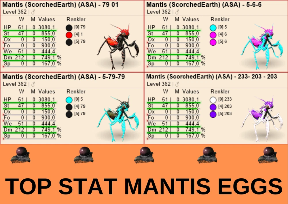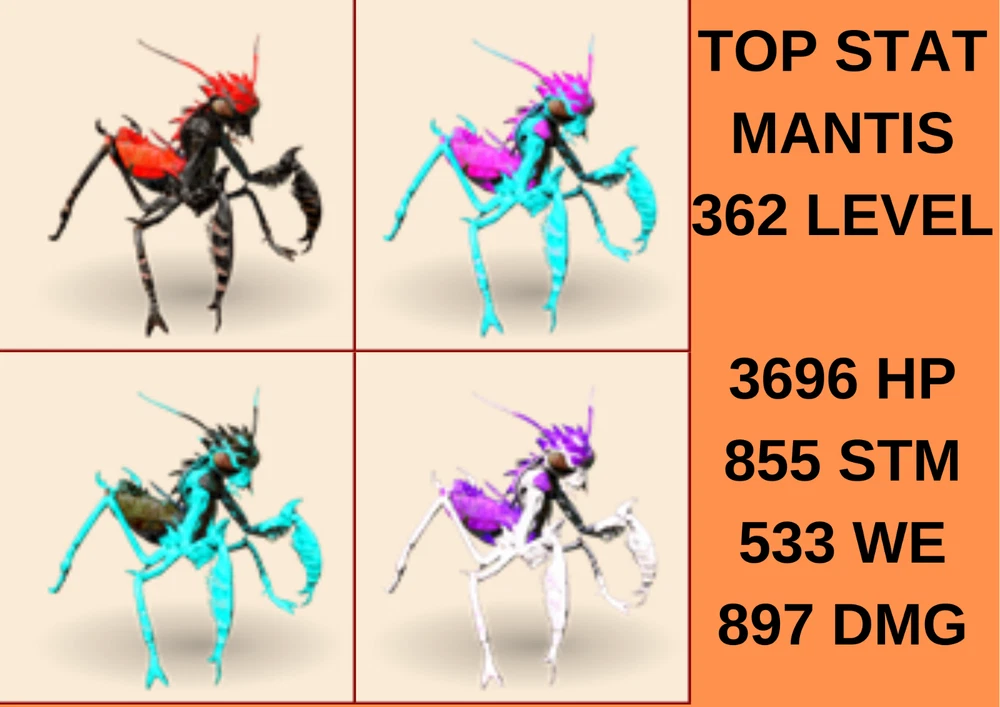 Mantis TOP STAT & EGGS 🐣 362 LEVEL Ark Survival Ascended Official PVE