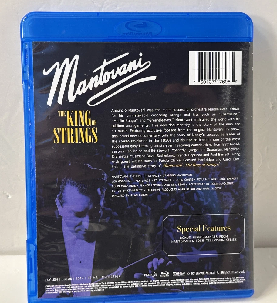 Mantovani - The King Of Strings Special Edition (Blu-ray) Mantovani - The King Of Strings Special Edition (Blu-ray) Thank you for browsing my listing and supporting Small Business. We've been selling on online for over 30 Years. As Pictured Listing and template services provided by inkFrog