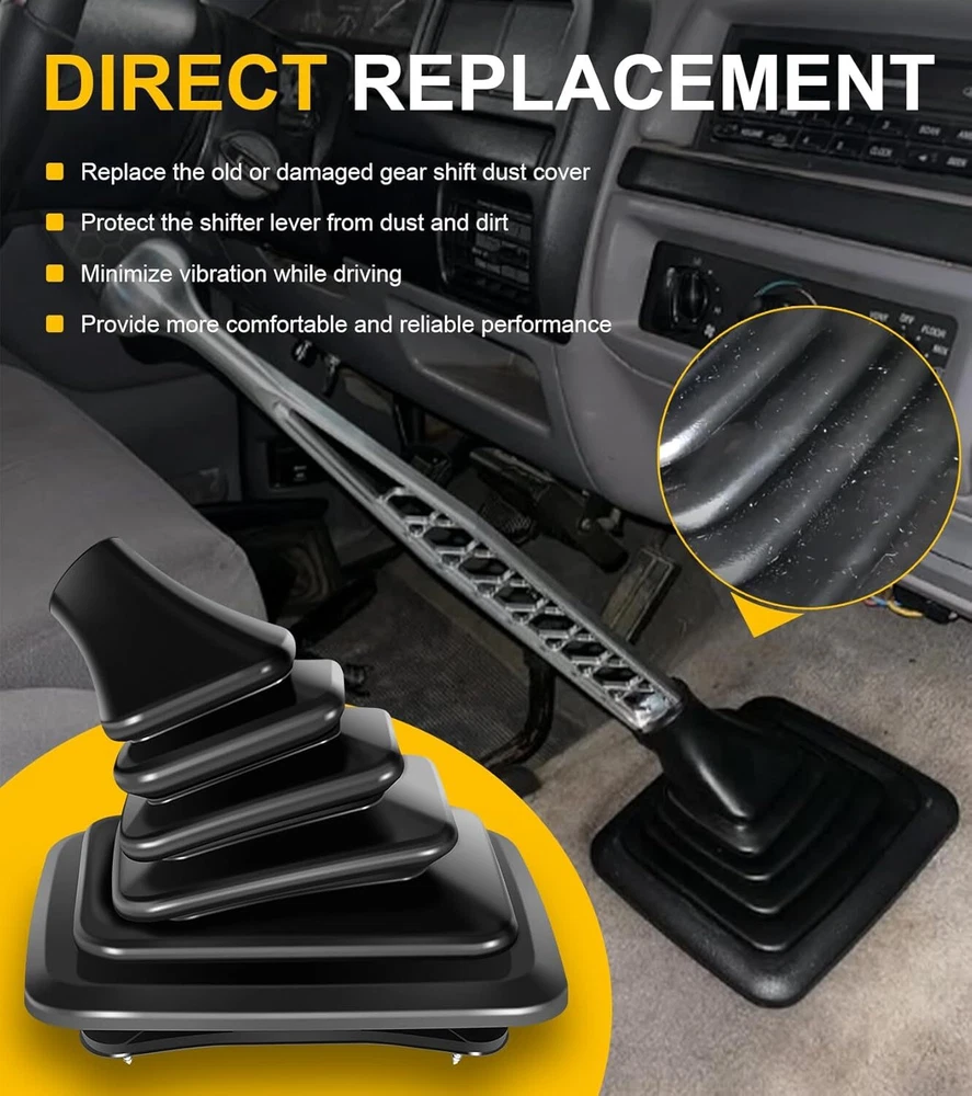 Manual Transmission Shifter Boot Gear Shifter Knob Rubber Boot for Ford F-250 F-350 F-450 F-550 Super Duty 1999-2007, for Ford ZF 5 or 6 speed manual transmissions, Replace for F81Z7277BB F81Z-7277-BB 【Fitment】 This manual transmission shift boot perfectly fits for Ford F250 F350 F450 F550 Super Duty 1999-2007. Compatible with Ford ZF6 manual transmission. Also works great with ZF5 manual 5-speed transmission. Replacement for Ford F81Z-7277-BB, F81Z 7277 BB, F81Z7277BB. (More details please refer to product description) 【Function】 Direct replacement for the old or damaged gear shift dust cover. It protects your shifter lever from dust and dirt and minimizes and vibration while driving, providing more comfortable and reliable performance. 【Easy to Install】 It only takes 10-15 minutes to complete the installation. Simply loosen the screws to remove the old boot and gearshift lever. Then gently press the boot into place until it is snug against the base of the lever and install the gearshift lever. Finally tighten the four screws to finish installation. 【Material】 Made of heavy duty black automotive grade rubber with dust-proof and good toughness. Built to last, it has great wear resistance and high temperature resistance. It can keep flexible and provide reliable performance after long term use. Superior Material Made of heavy duty black automotive grade rubber with dust-proof and good toughness. Built to last, it has great wear resistance and high temperature resistance. It can keep flexible and provide reliable performance after long term use. Play Video Direct replacement for the old or damaged gear shift dust cover. It protects your shifter lever from dust and dirt and minimizes and vibration while driving, providing more comfortable and reliable performance. Simply loosen the screws to remove the old boot and gearshift lever. Then gently press the boot into place until it is snug against the base of the lever and install the gearshift lever. Finally tighten the four screws to finish installation. CONTACT US: If you meet any problem after receiving our product, please feel free to contact us. We will try our best to solve your problem. SHIPPING POLICY: Orders will be ship out within 1-2 business days after payment has cleared. Orders from Saturdays, Sundays or holidays will process on next business day and will be ship within 24 hours. Please allow 10-30 days for international deliveries. Some shipments could take longer subject to your local customs authorities. RETURE & WARRANTY: 1 We accept 30 days return guarantee for all Items If you are unsatisfied with something you bought from us, you may send it back within 30 days of receipt, and we shall be happy to exchange or refund. 2 Leave a message note in returned box quoting your item(s) ID and buyer ID. 3 All returned products must be in their original condition and packaging. Unfortunately, if products have been assembled or modified, we cannot take them as returns. 4 It is important that we know when your return is expected. Please save your return tracking number or post receipt, and email it to us. We need this in case there are any issues during transit. 5 Refund will only be issued upon our receipt of the returned parcel. Please allow 2 working days for us to process with your return. ABOUT REPLY: If you have any questions, please feel free to email our service specialists 24 Hours a Day, 7 Days a Week, and we will reply you ASAP. If no response within 24 Hours, please check the spam of mail box or kindly re-send it to us. ABOUT FEEDBACK: Please contact us before leaving Netural or Negative feedback if you are not satisfied our service or products. Good communication is helpful for both of us to resolve any problems and issues. We work hard to make sure EVERY CUSTOMER 100% SATISFIED and resolve any problem for you and always leave positive feedback to all our customers. If you are satisfied with our service, please leave FOUR 5-Detailed Selling Rating (DSR). Thanks!