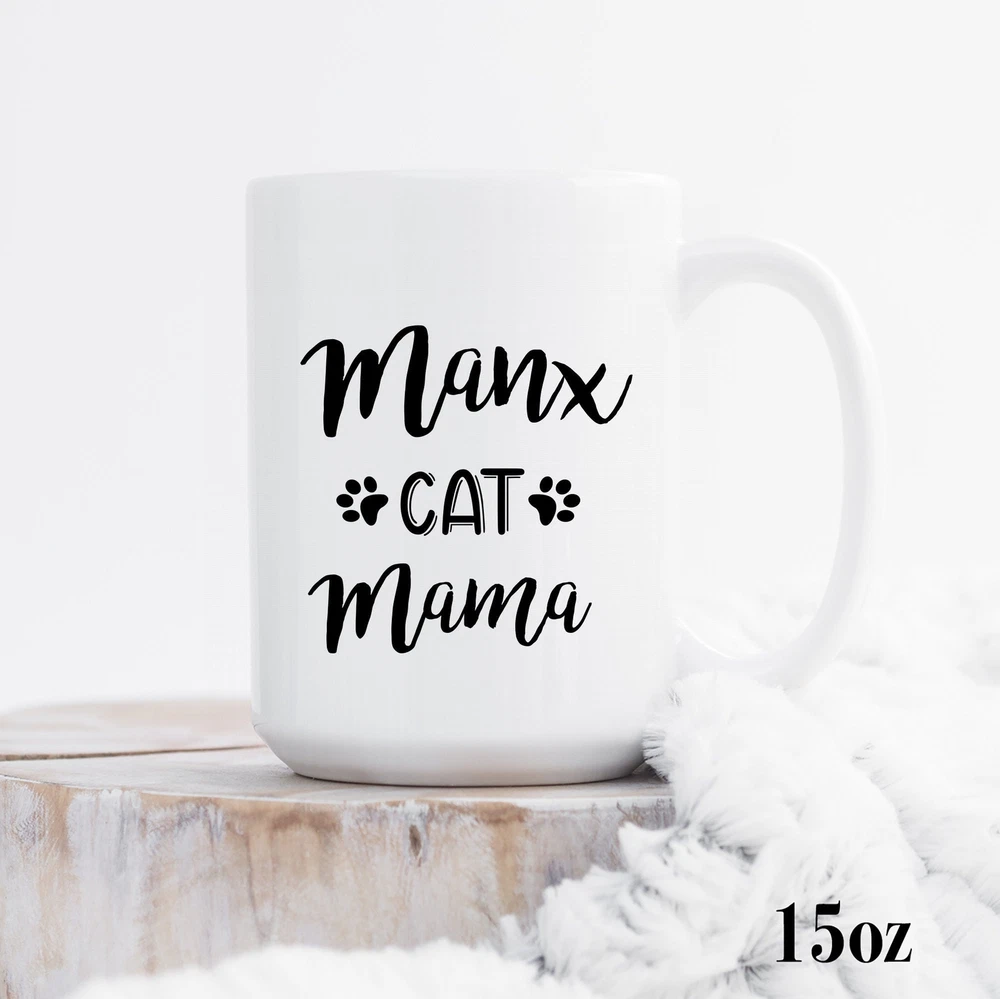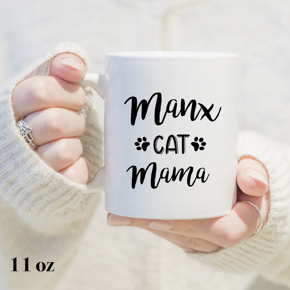 Manx Cat Mama Mug Manx Cat Mug Manx Cat Gift Manx Lover Mug Manx Owner Gift Manx Product Details.. This high quality 11oz. ceramic white mug has a premium hard coat that provides crisp and vibrant color reproduction sure to last for years. Perfect for all hot & cold beverages. The highest quality printing possible is used. It will never fade no matter how many times you wash it. Material: 100% Ceramic. Print both sides. Dishwasher and Microwave Safe. High Gloss + Premium White Finish. Printed in the U.S.A. Personalized & Custom. We support personalized and custom mug to add custom, when placing an order, you can add notes to the "order note" in shipping address section. Also you can contact us directly via message. Shipping Info. Ready to ship in 1 to 2 business days, All products are made-to-order and proudly printed in the United States. Shipped by USPS and DHL, You will receive your order in 5-7 days. Replace & Refund. All products are defective during shipping broken, chipped will be replaced free of charge. You are not satisfied with the product, we will refund 100% money to you. If any other issues arise, please do not hesitate to message, we would be more than happy to assist you.
