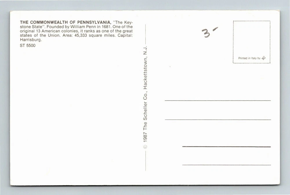 Map PA, Keystone State Original 13 Colonies, Pennsylvania Vintage Postcard