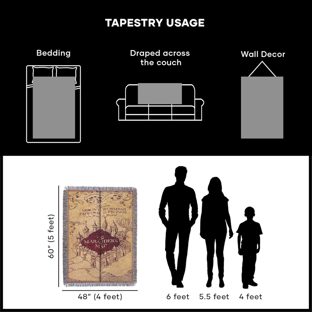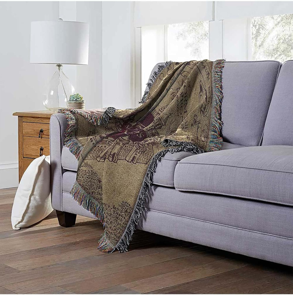 This Marauder's Map throw blanket is a must-have for any Harry Potter fan! The design is stunning, and the soft, woven polyester feels amazing—perfect for snuggling up on the couch. The fringe detailing adds a nice touch, making it look just like a magical tapestry. It’s lightweight yet warm, great for movie nights or adding a little wizarding charm to your room. Absolutely love it!