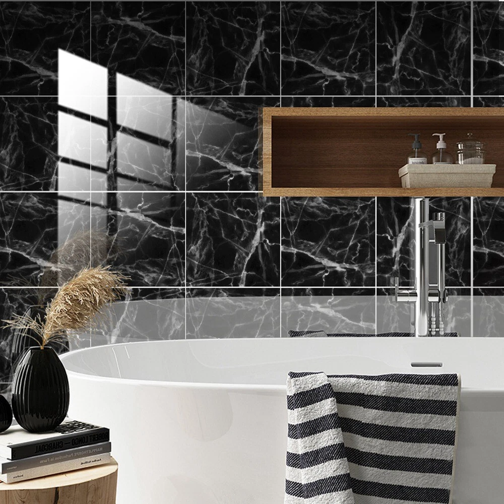 Marble Decorative Adhesive Tile Stickers for Bathroom and Kitchen Tile8551 [Quality Materials]: Our tile stickers made of PVC , the package contains 10 sheets, with fully waterproof design. [Features]: Our kitchen tile stickers are waterproof, oil-proof, easy to clean and self-adhesive. Suitable for use between -30 degrees C to 85 degrees C, to withstand heat and humidity. [Easy to install]: Easy to apply and remove, without damaging the application . Tile pattern kitchen stickers can be cut with regular scissors. Can be freely combined. [Widely used]: Our PVC waterproof self-adhesive can be used in bathrooms and kitchens, showers, doors, walls, , ceilings, tiles, plastic surfaces, household appliances or wooden furniture. Colour:B: black+white Material:pvc Size:S:10cm Package Contents: 10 x wall stickers