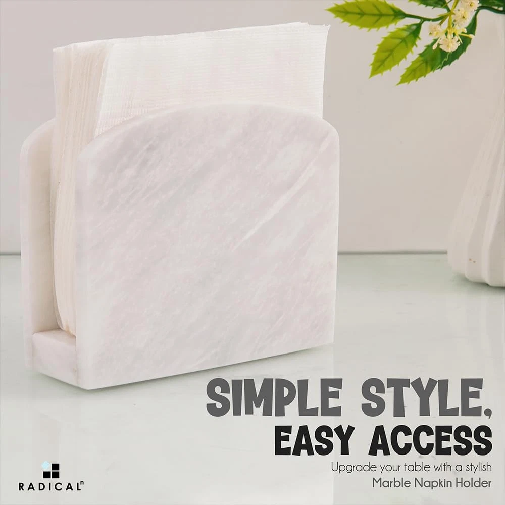 WHAT IS INCLUDED - 1x Napkin Holder. Comes Along With Branded Secure Packaging. MATERIAL - As The Item Is Made Of High Quality Of Natural Marble So Color May Sometime Vary. SIZE - Height: 5.5 Inches. Length : 6.5 Inches. Width 2.5 Inches MULTIPURPOSE - Elegant design to fit your modern or traditional home decor.Convenient access for paper napkins, cloth napkins, cocktail napkins, luncheon, and dinner napkins. WON'T TOPPLE OR TUMBLE - The heavy-duty marble keeps it steadily in place. SPACE SAVING - This napkin holder is very magnificent and modish and can place paper towels vertically to save space.