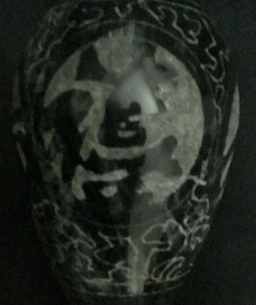 Black and gray marble vase with etched design. Vintage. Size 8” x 3” diameter