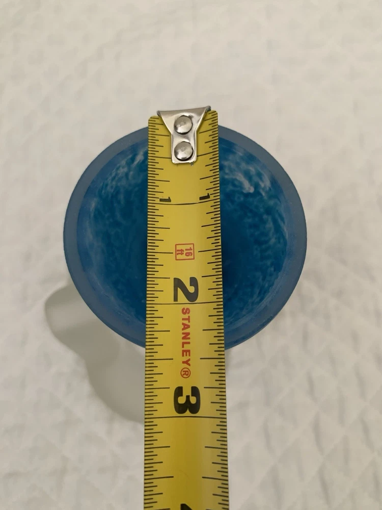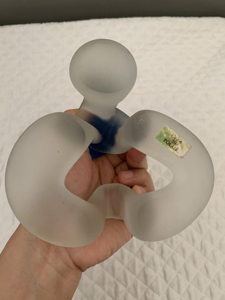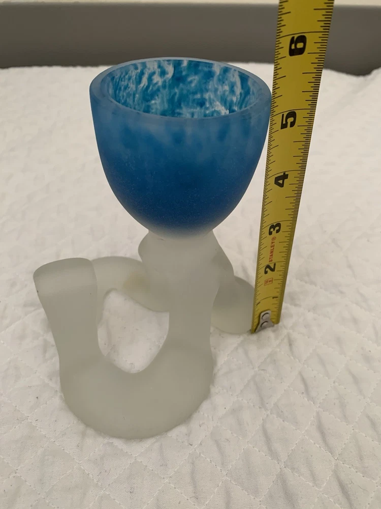 This striking candleholder is a unique addition to any collection of decorative collectibles. Its marbled pattern and blue color make it a beautiful piece to display in any room. The frosted finish adds a touch of elegance, while the unusual pedestal makes it a conversation starter. Crafted from high-quality glass and made in Poland, this candleholder is a true work of art. Its design is perfect for those who appreciate the beauty and craftsmanship of art glass. Whether you're looking for a birthday gift or simply want to add some character to your home decor, this candleholder is sure to impress.