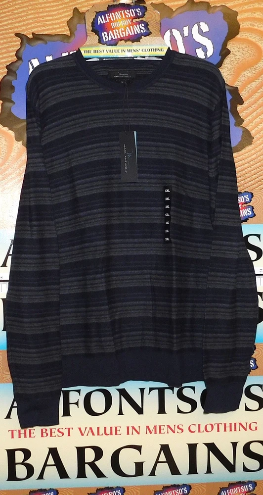 Marc Anthony Luxury Blend Crew Neck Sweaters Cotton, Merino Wool, Cashmere blend. MSRP $65.00 Photos of items being sold. The Marc Anthony Men's Luxury Sweaters are crafted from a luxurious blend of 90% Cotton, 5% Cashmere, and 5% Merino Wool, providing both comfort and sophistication. This slim-fit sweater features a tight-knit construction and a classic crew neck design, making it a versatile and stylish addition to any man's wardrobe. Perfect for layering or wearing on its own, these sweaters are machine washable for easy care and maintenance. Made in China, they offer a high-quality finish at an affordable price of $19.99 CLEARANCE SALE