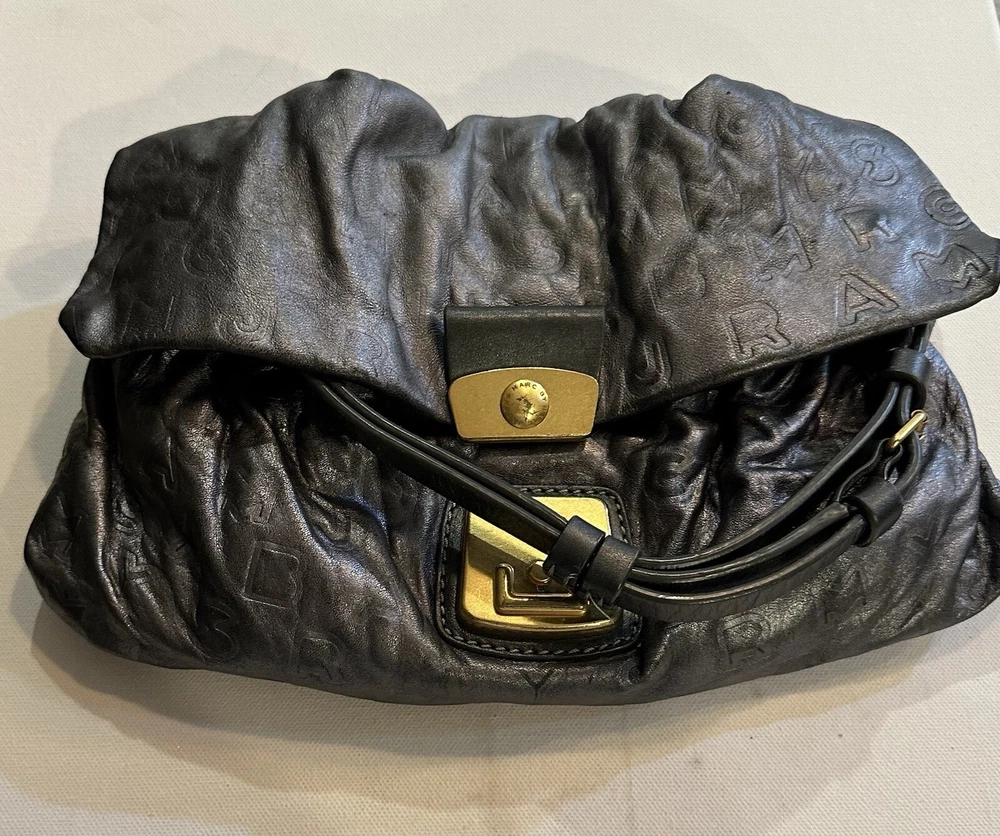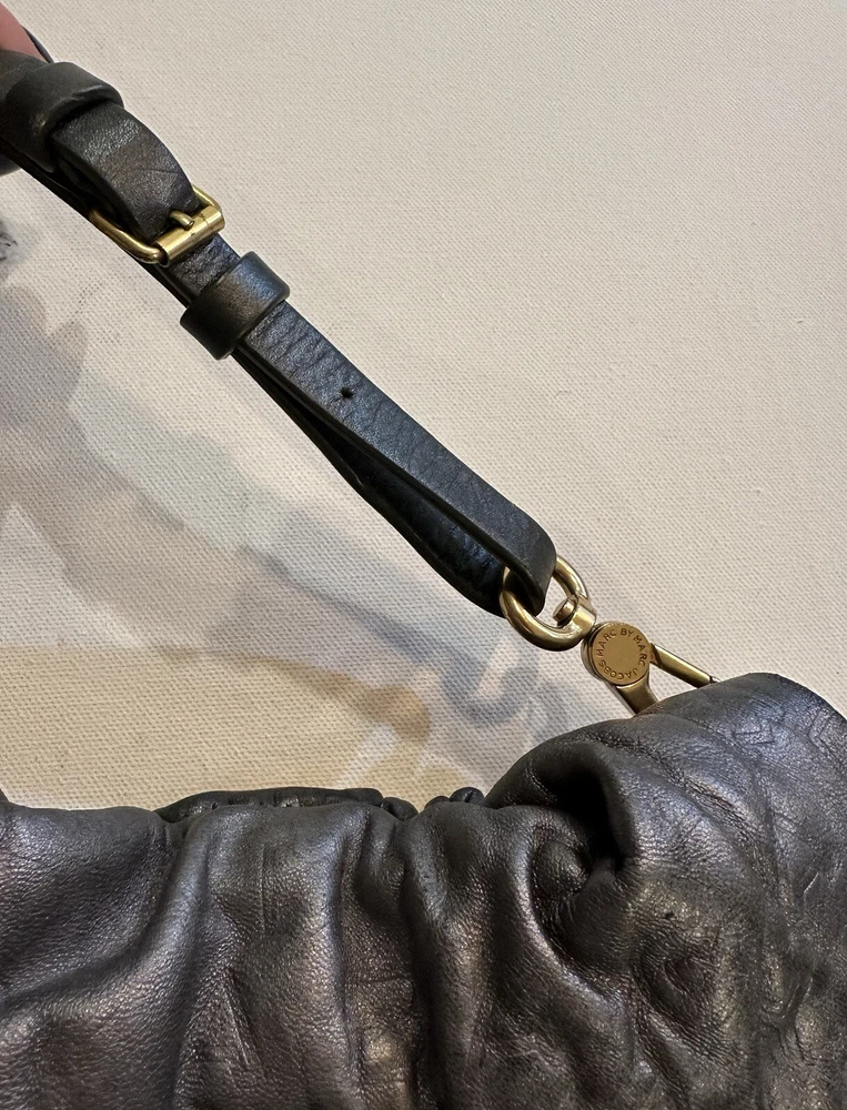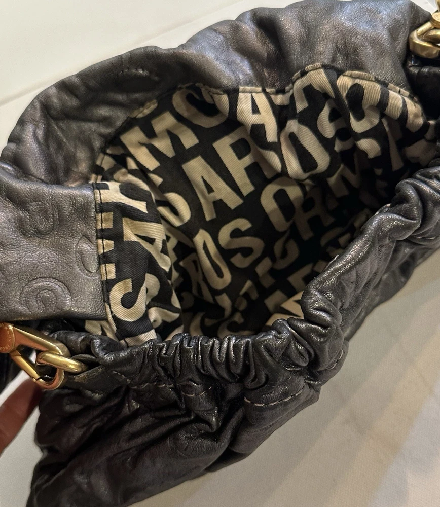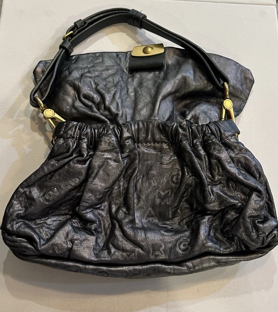 Marc By Marc Jacobs SMALL soft monogrammed Leather Shoulder Strap Hobo Handbag. Condition is Pre-owned. Shipped with USPS Ground Advantage.