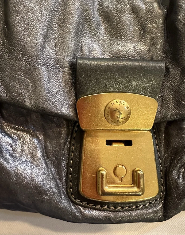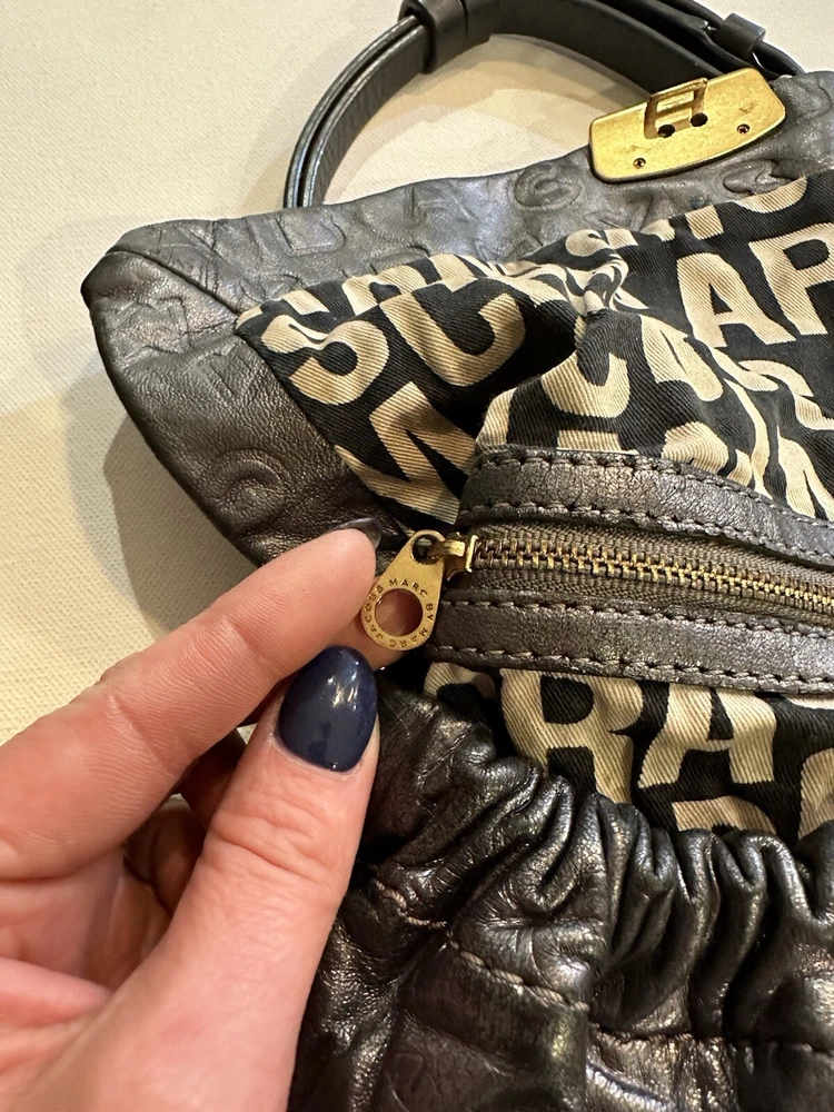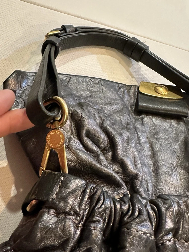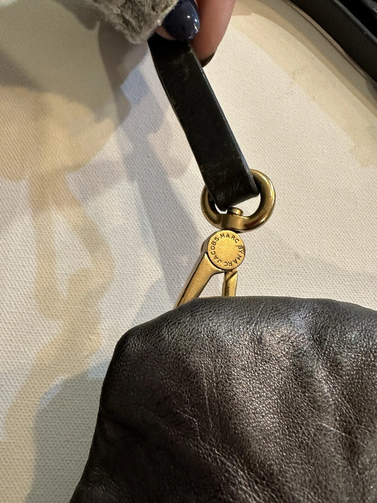 Marc By Marc Jacobs SMALL soft monogrammed Leather Shoulder Strap Hobo Handbag. Condition is Pre-owned. Shipped with USPS Ground Advantage.
