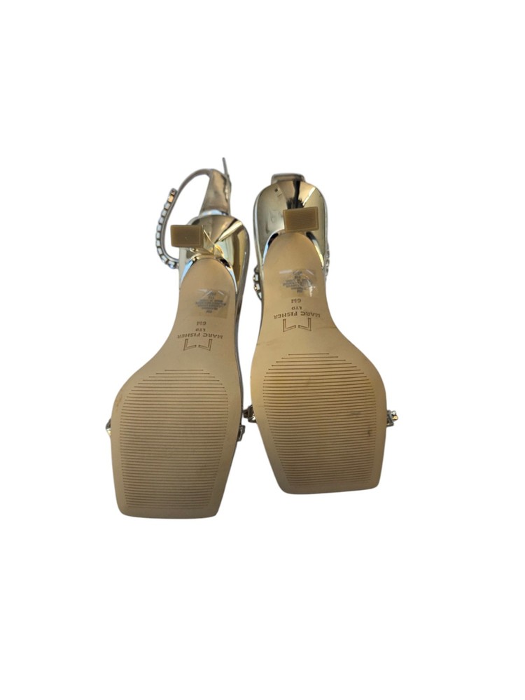 New Marc Fisher LTD Karima Ankle Strap Sandal Gold Cocktail High Heels Size 6M Condition: New Size: 6M Heel: 4" These are new Marc Fisher LTD Karima ankle strap sandals in gold featuring jeweled accents. They have a buckle closure, ultra-high heel, and synthetic upper material. The sandals are in size 6M and have a stylish ankle strap design, making them perfect for cocktail events. (Bin G21) SK000PH