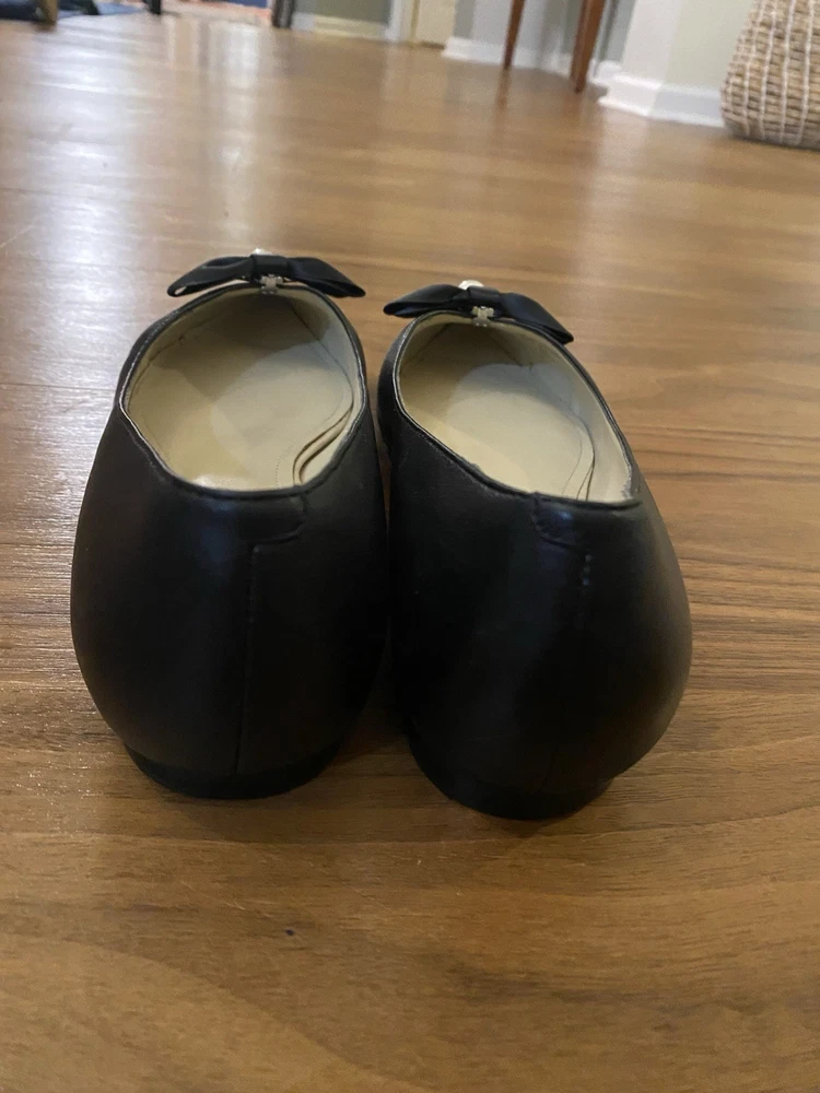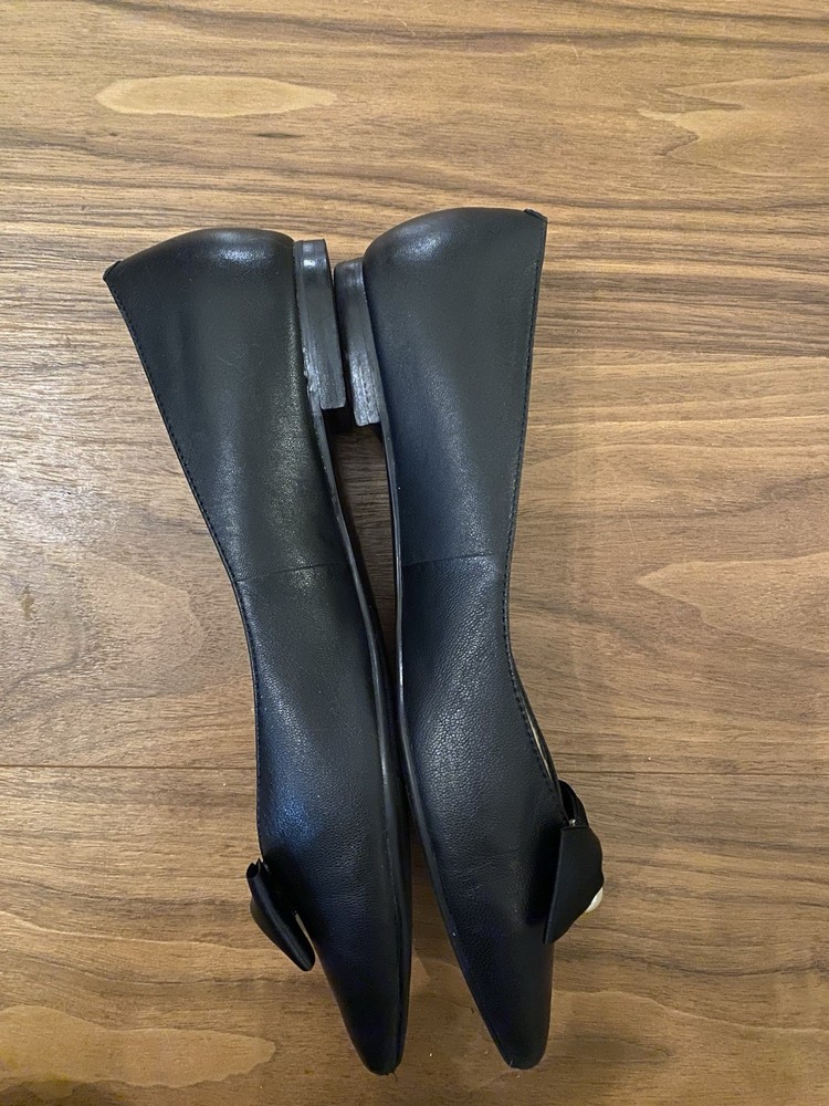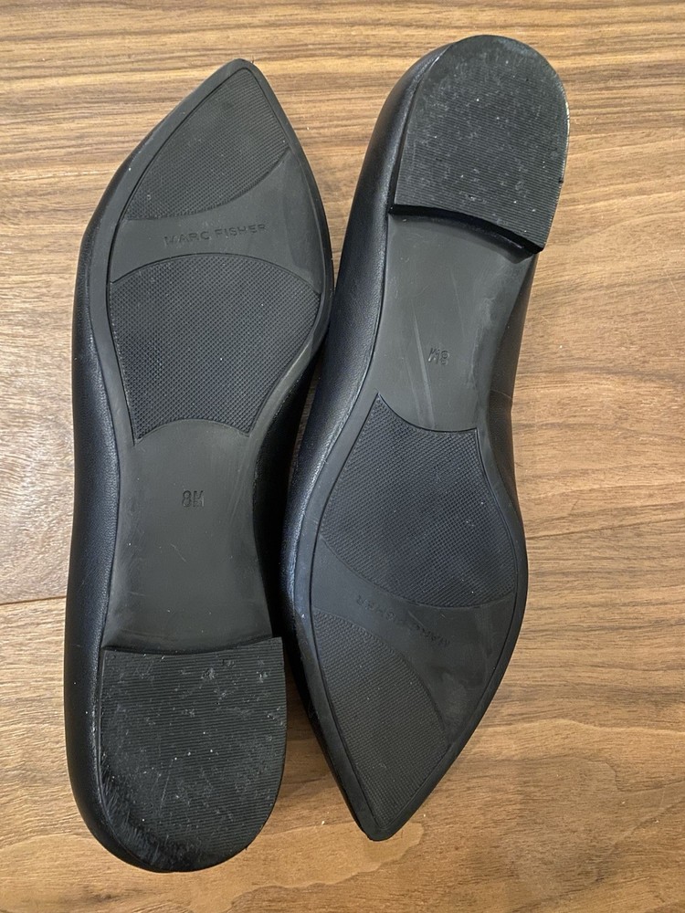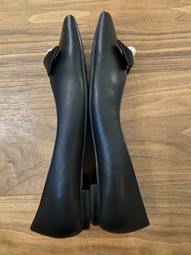 Elevate your everyday style with Marc Fisher's sophisticated black ballet flats. Featuring a chic pointed toe and a faux leather upper, these size 8 slip-ons blend modern flair with classic elegance. The design is adorned with a delicate pearl and bow accents, adding a touch of femininity to your ensemble. Perfect for a variety of occasions, these flats offer both comfort and versatility. Crafted with a synthetic outsole and a matching insole, they are ideal for the fashion-conscious woman looking to make a subtle yet striking statement in the fall, spring, or summer seasons. See pictures for more details and please let me know if you have any questions!