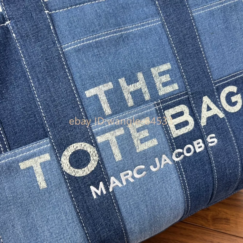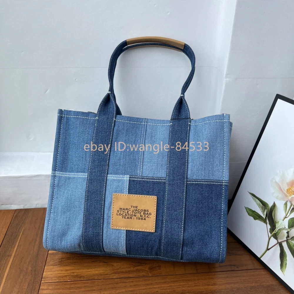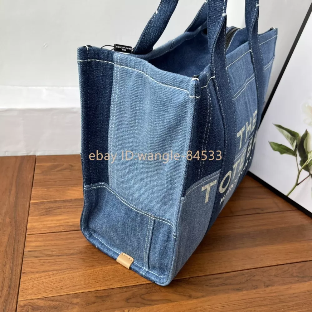 Elevate your style with the Marc Jacobs The Small Tote Bag in an elegant green hue. This compact and stylish bag is perfect for carrying your essentials with ease and elegance. It features: Brand: Marc Jacobs Color:Blue Material: leather and Denim Dimensions: 41cm (L) x 34cm (H) x 16cm (W) Features: Spacious main compartment for all your necessities No shoulder strap Iconic Marc Jacobs branding on the front Condition: New,Never Used Ideal for both casual and formal occasions, this Marc Jacobs tote bag combines functionality with fashion, making it a must-have accessory. The high-quality leather ensures durability, while the elegant green color adds a touch of sophistication to any outfit.