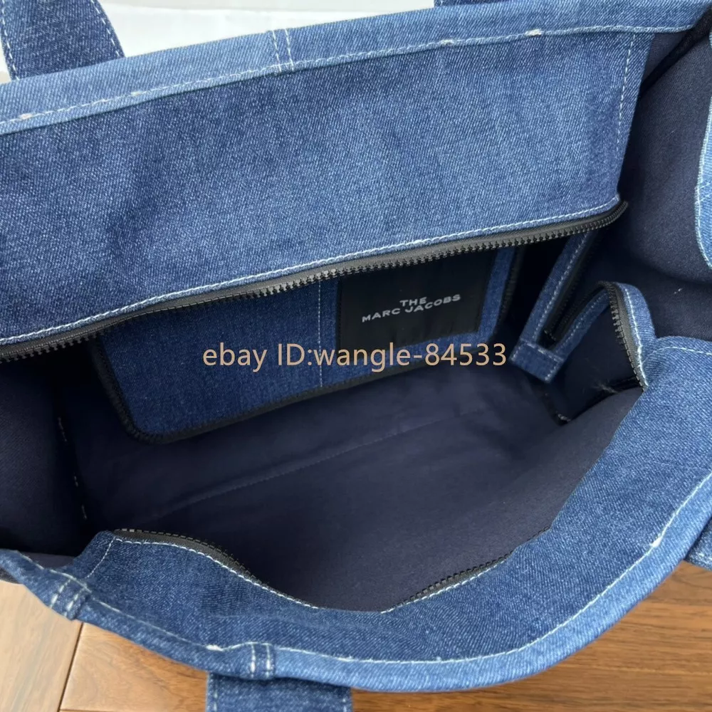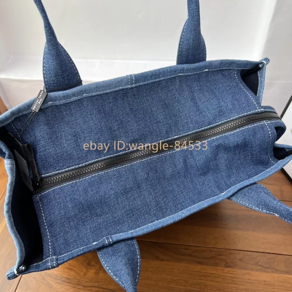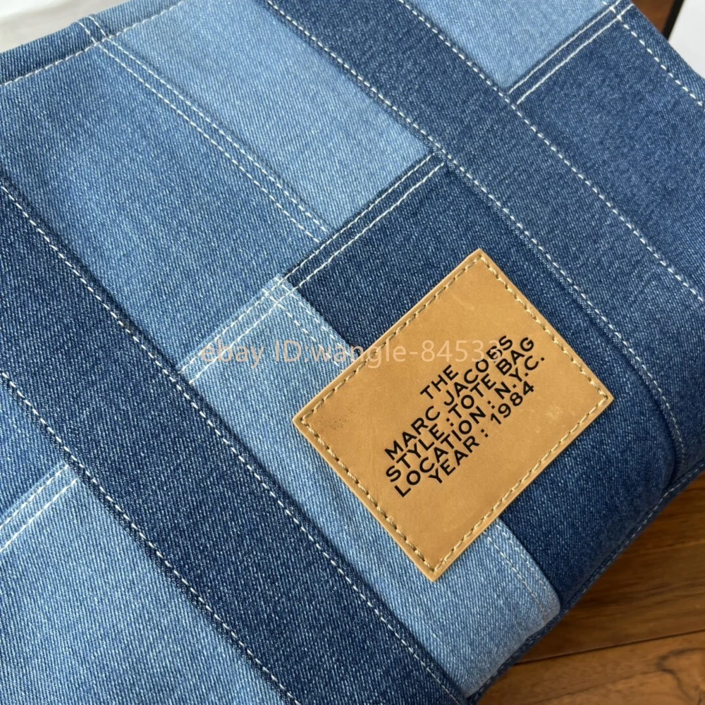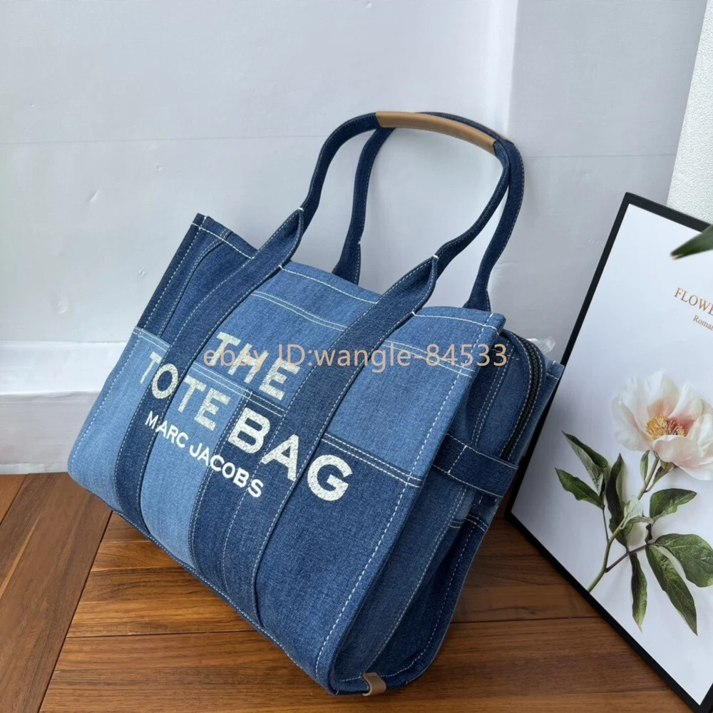 Elevate your style with the Marc Jacobs The Small Tote Bag in an elegant green hue. This compact and stylish bag is perfect for carrying your essentials with ease and elegance. It features: Brand: Marc Jacobs Color:Blue Material: leather and Denim Dimensions: 41cm (L) x 34cm (H) x 16cm (W) Features: Spacious main compartment for all your necessities No shoulder strap Iconic Marc Jacobs branding on the front Condition: New,Never Used Ideal for both casual and formal occasions, this Marc Jacobs tote bag combines functionality with fashion, making it a must-have accessory. The high-quality leather ensures durability, while the elegant green color adds a touch of sophistication to any outfit.