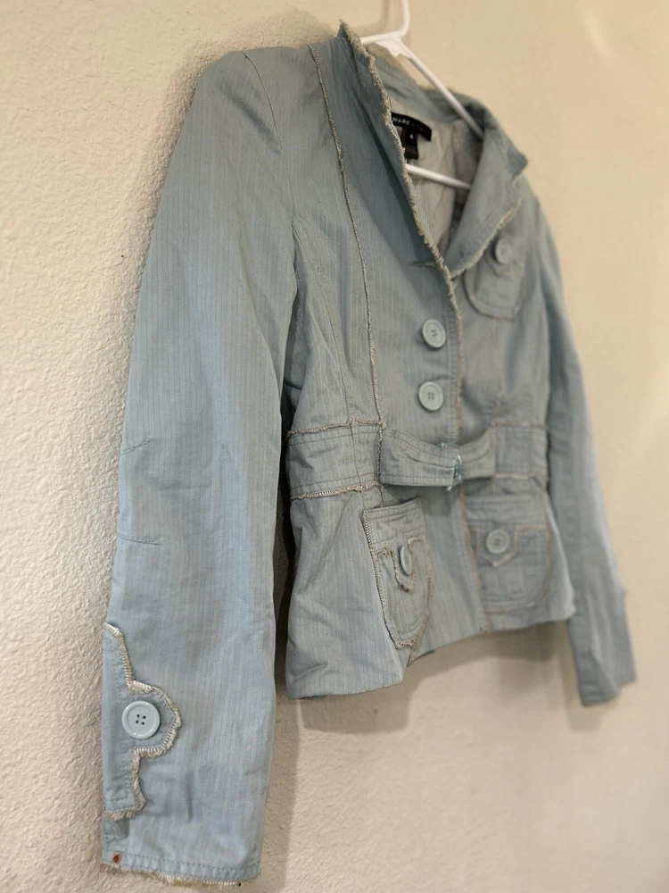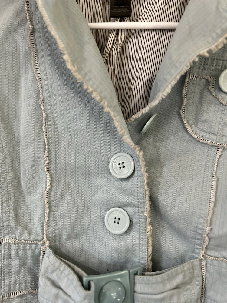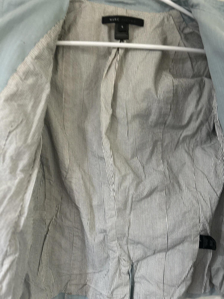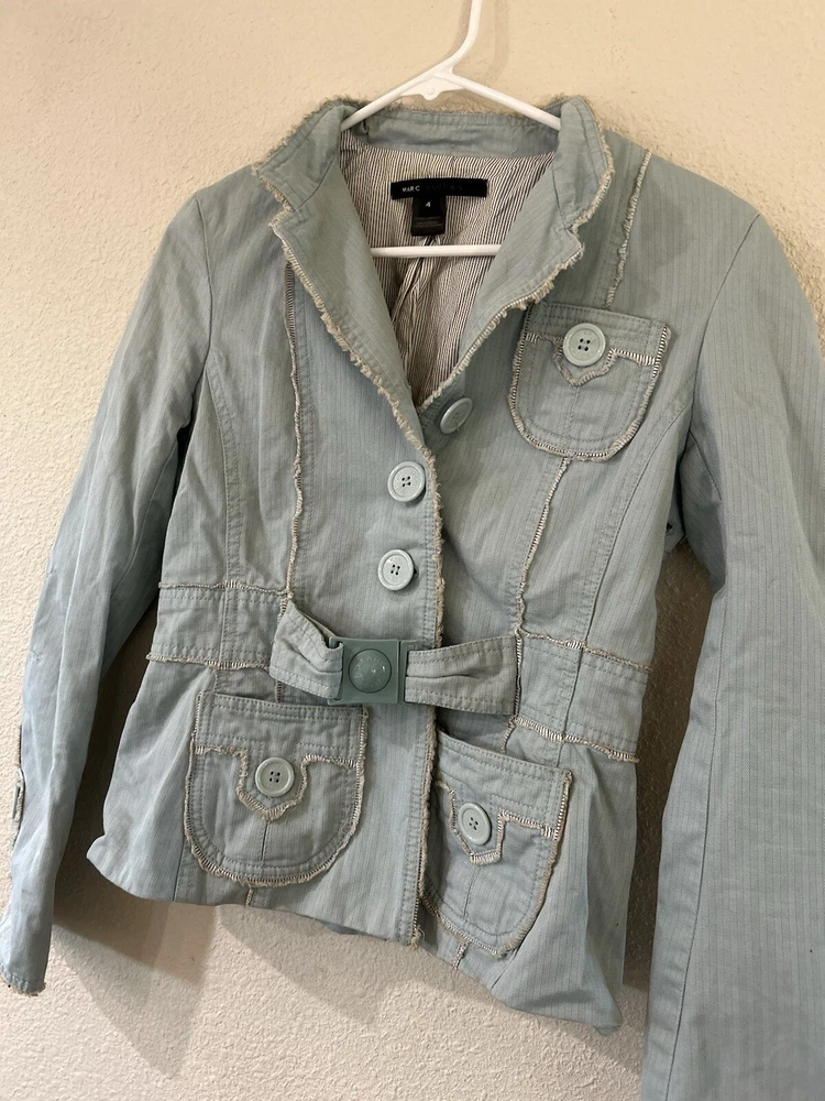 Season: Fall gtin13: Does not apply Theme: Designer Handmade: No Fit: Regular Type: Jacket Size Type: Regular Outer Shell Material: Cotton Pattern: Solid Country/Region of Manufacture: Unknown Fabric Type: Denim Accents: Button, Fringe Department: Women Vintage: No Jacket/Coat Length: Short Color: Blue Garment Care: Machine Washable Brand: Marc Jacobs UPC: Does not apply Closure: Button Occasion: Casual Lining Material: Cotton Sleeve Length: Long Sleeve Features: Pockets Style: Basic Jacket Size: 4