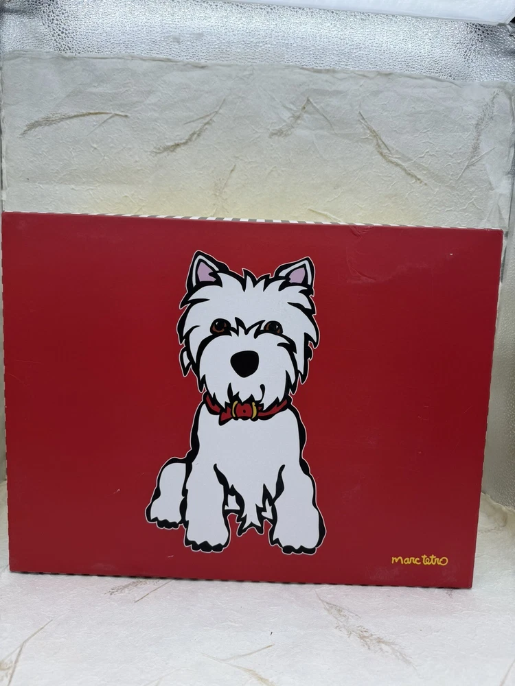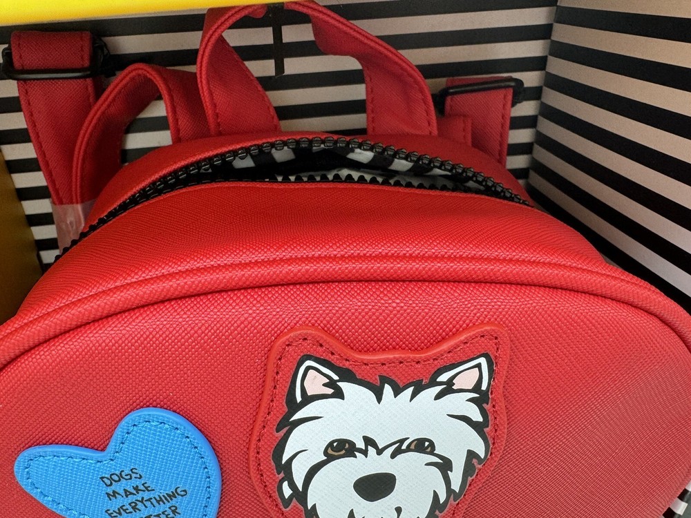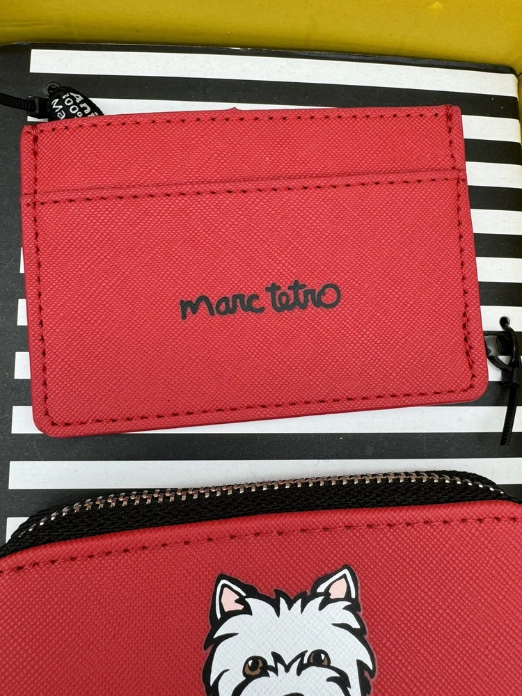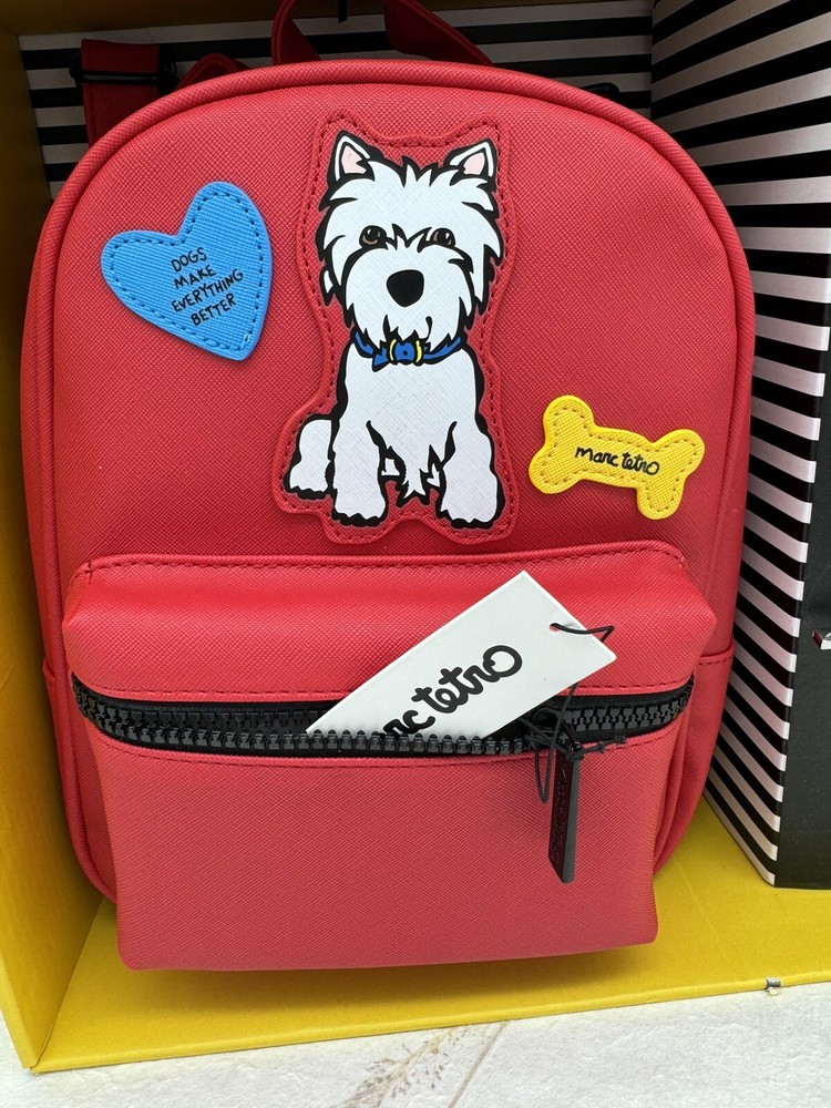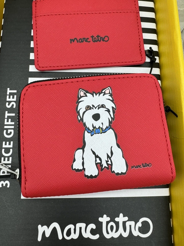 🌸 Marc Tetro Westie White Dog Backpack, wallet, and card holder 3 piece Gift Box SET! 🌸 The super popular and highly sought out Adorable Marc Tetro and the dog collection line 🌸 Hard to find and great for you or as a gift to any dog lovers there! Would make a wonderful Valentine’s Day gift for a loved one. 🌸🌸 DESCRITION: White Westie Dog Design Staffiano Synthetic Leather 🌸 1. Zip wallet, 5”x 4” 🌸 2. Matching mini backpack: zipper closure, small front pocket, bigger pocket with inner zipper pocket and regular pocket inside, adjustable straps, bag measures 10" length, 7.5" height and 4.5” width. 🌸 3. Card holder: 4.25” wide and 3” high. 🌸 Brand new with tags, never been used comes in gift box Gift box has a few shelf wear scuff, purchased as such, doesn't impact the item at all! 🌸 Brand new in box, never been used! 🌸 Please see photos for closer inspection and more details! Thanks for shopping 🌸