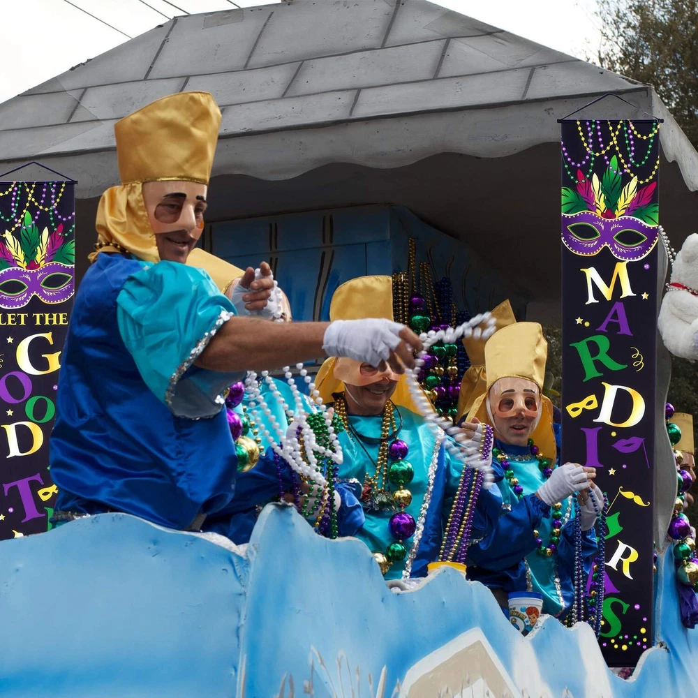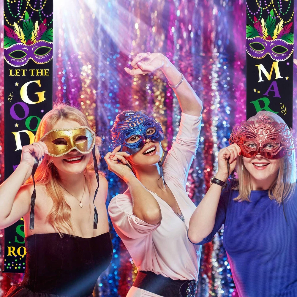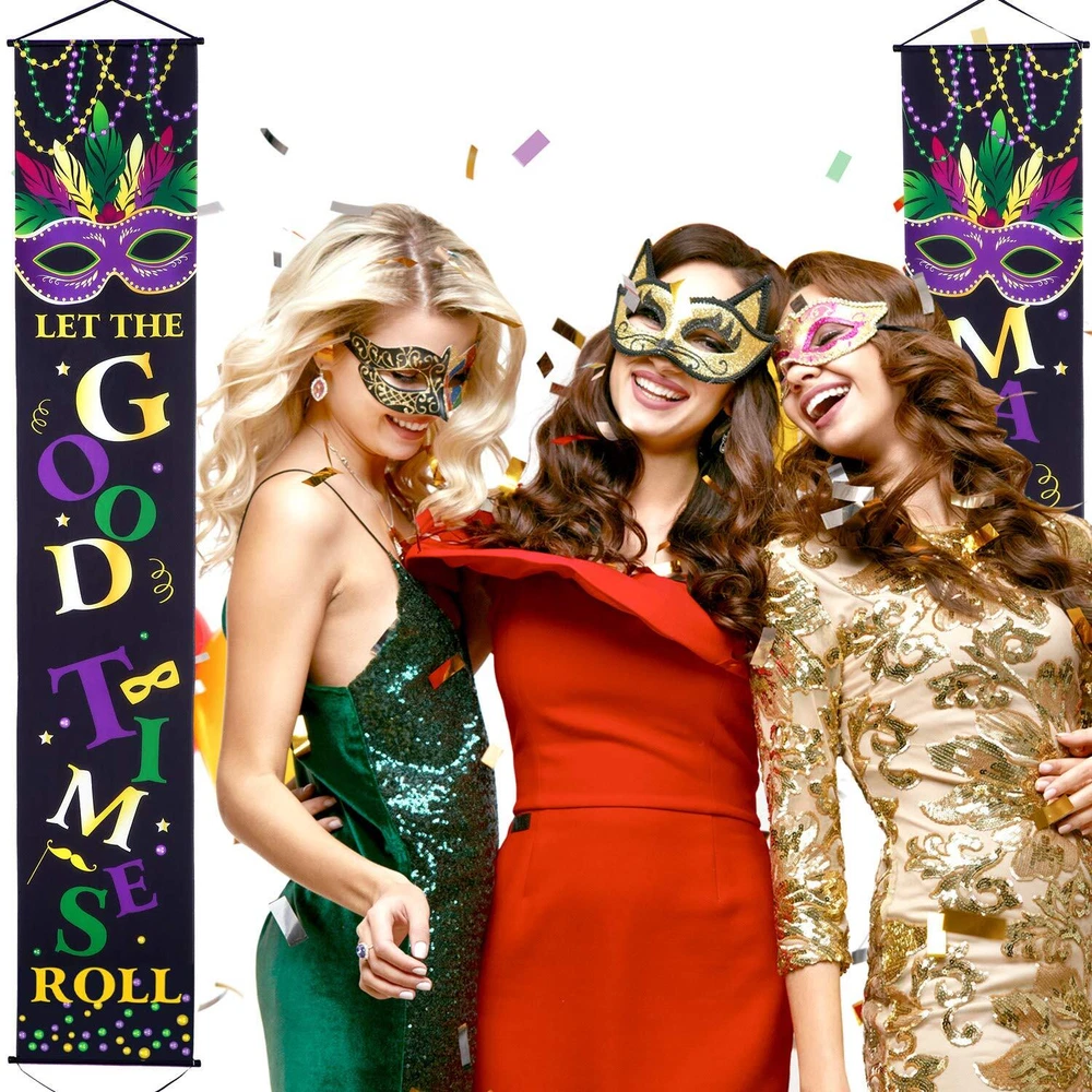 Mardi Gras Decoration Set Mardi Gras Porch Sign Welcome Banner Mardi Gras Hanging Decoration for Indoor/Outdoor Decoration Mardi Gras Masquerade Party (Black, 2 Pieces) Package list: 2 Pieces Mardi Gras banners decoration: 1 x "LET THE GOOD TIMES ROLL " banner, 1 x "MARDI GRAS" banner Come with plastic rod and hanging strings. Mardi Gras party decoration is applied to decorate home, shops, windows, porch, suitable for holiday party, festival, shower parties, celebrations, dances party, masquerade party, etc. Vivid colors Mardi gras signs decor: Designed with delicate feather mask, mustache, mouth party photo prop, glitter confetti patterns; The letters' color have gold, purple, green. Add Mardi gras atmosphere, make your front door, porch, living room more different, catch people eyeball. Porch sign Mardi Gras banner material: Weather resistant fabric: Made of polyester fabrics, the LET THE GOOD TIMES ROLL / MARDI GRAS banner will not absorb so much water, easy to air dry in rainy day. Size: "LET THE GOOD TIMES ROLL " banner: approx. 12 x 72 inch (L x W) "MARDI GRAS" banner: approx. 12 x 72 inch (L x W) Wall mardi gras decoration application: Fit for Mardi gras, window decorations, porch, as a welcoming front door sign or indoor/outdoor party decoration. Note: There are hanging strings on the top and bottom of the banner, they can secure the banner in place, so that the Mardi gras banner will not fly in the wind. You can also attach the bottoms of LET THE GOOD TIMES ROLL / MARDI GRAS banner to some heavy things that sit at the bottom. Mardi Gras decoration banner set: "LET THE GOOD TIMES ROLL IN" banner, 12 x 72 inch (L x W), "MARDI GRAS" banner, 12 x 72 inch (L x W), fit for Madi Gras as a welcoming front door sign or party decoration Beautiful Mardi Gras banner party sign: serve as beautiful decorations for Mardi Gras, designed with delicate feather mask, mustache, mouth party photo prop, glitter confetti patterns Mardi Gras Decor Create Mardi Gras atmosphere: the "LET THE GOOD TIMES ROLL IN/ MARDI GRAS" mardi gras porch banner set party decorations are amazing to boost atmosphere for holding Mardi Gras party/ Mardi gras parade Mardi gras party decoration material: the "LET THE GOOD TIMES ROLL IN/ MARDI GRAS" hanging sign is made of polyester, mardi gras flag is easy to hang; With secure strings, it won't get blown and twisted about with the slightest breeze Pattern and application: the masquerade porch signs are suit for Mardi Gras, as a welcoming front door sign or party decoration, delicate garland can be hung on ceilings, windows, gardens, parade and so on Shipping from the USA All of our products are shipped from the USA, ensuring quick delivery to your destination. Payment We offer the following payment methods: PayPal, credit card, bank transfer, and eBay's secure payment system. Free Shipping & Free Returns Shipping within the USA is FREE. Additionally, any return is absolutely free for you. Risk-Free Purchase You have the option to return an item within 30 days without any justification. We cover the return shipping costs! Fast Shipping We ship immediately upon receipt of payment. Generally, the package is delivered within 2-3 days in the USA. If it takes longer, we will contact you. Quality and Costs Made in Europe, USA, China No customs fees or additional charges Total satisfaction guarantee Invoice with declared VAT available upon request in .pdf format Feedback Your feedback is very important to us. After you pay for your purchase, you will automatically receive positive feedback from us.