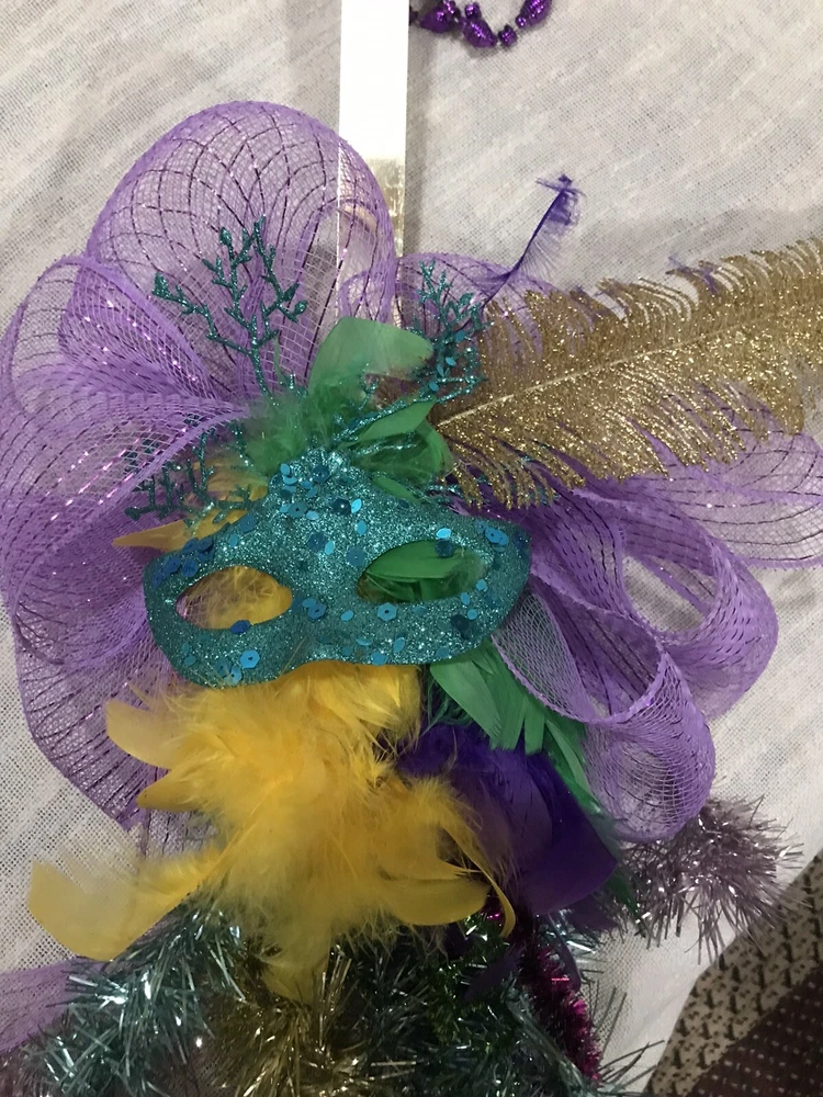 Add some festive flair to your front door with this Mardi Gras Door Hanger Decor. Crafted by hand with care, this door decor is perfect for the occasion. The multicolor design will brighten up your space and make it stand out from the rest. Whether you're throwing a Mardi Gras party or just want to add some excitement to your home, this door decor is a great choice. It's easy to hang and will stay securely in place throughout the festivities. Get ready to celebrate in style with this unique and eye-catching door decor.