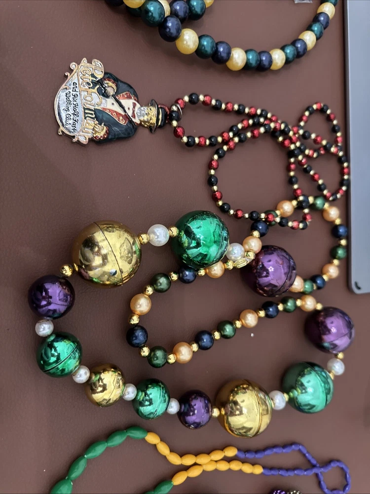 Mardi Gras Necklaces X 8 and Brooch