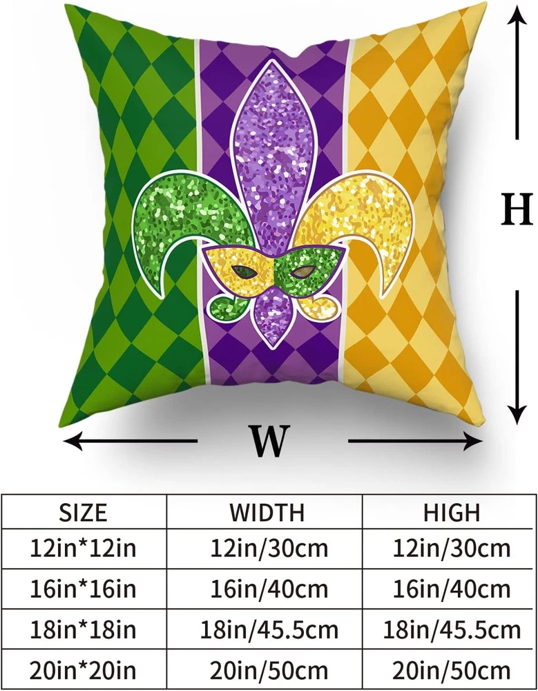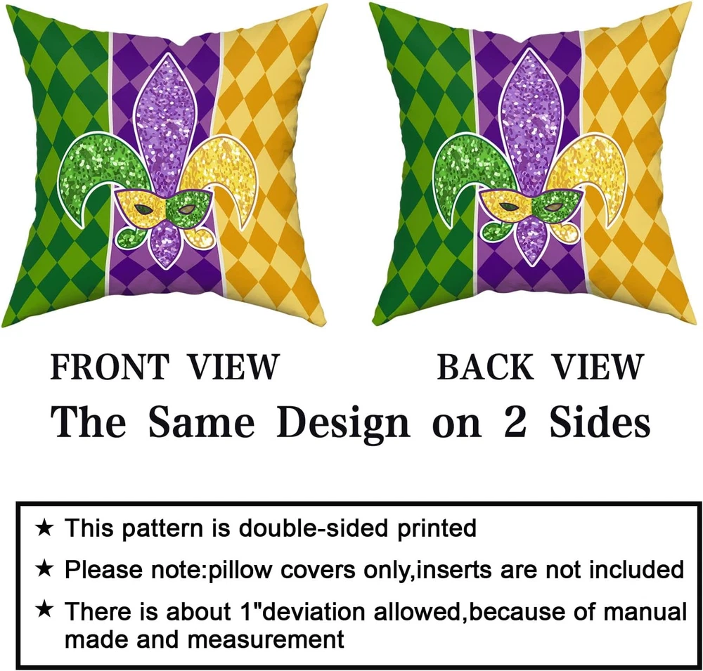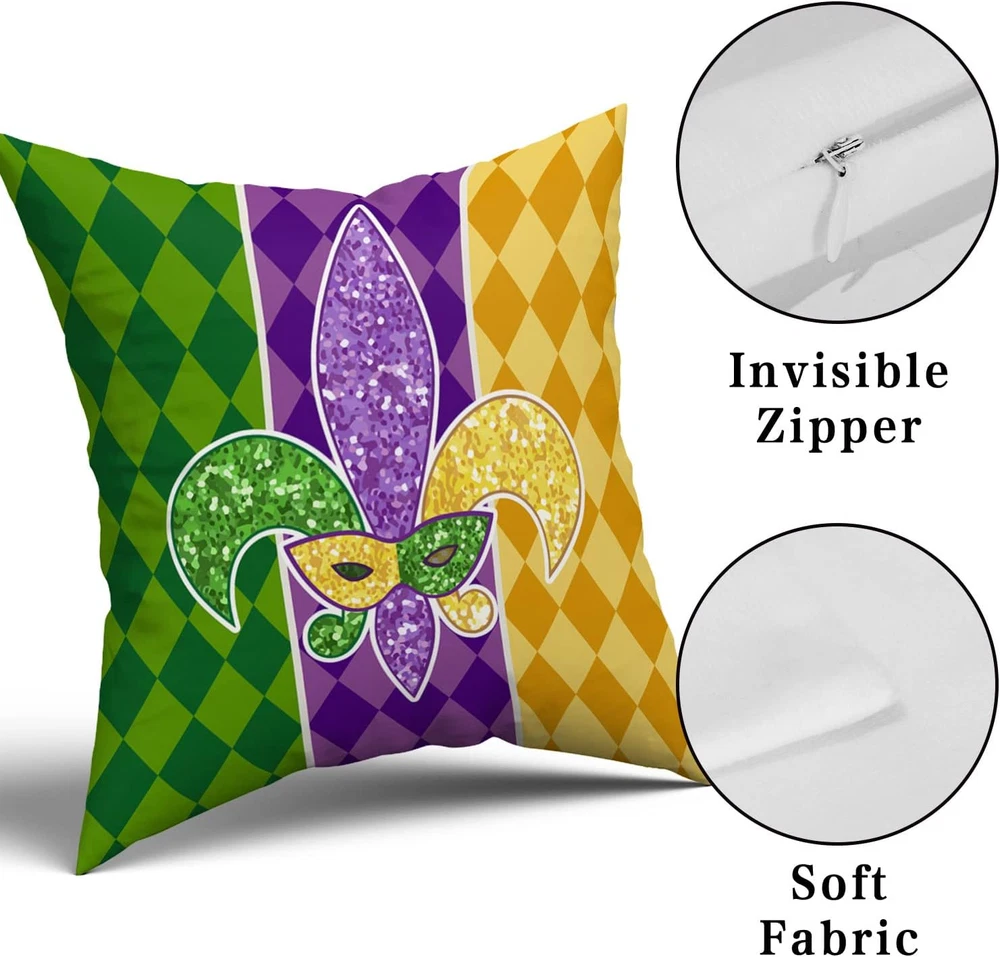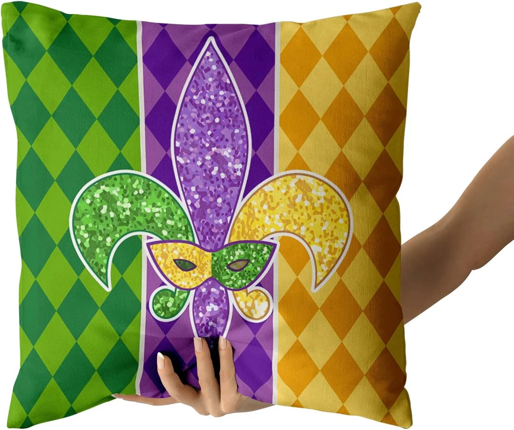 Mardi Gras Pillow Covers 18X18 Inch Masquerade Mask Fleur De Lis Couch Pillow Ca